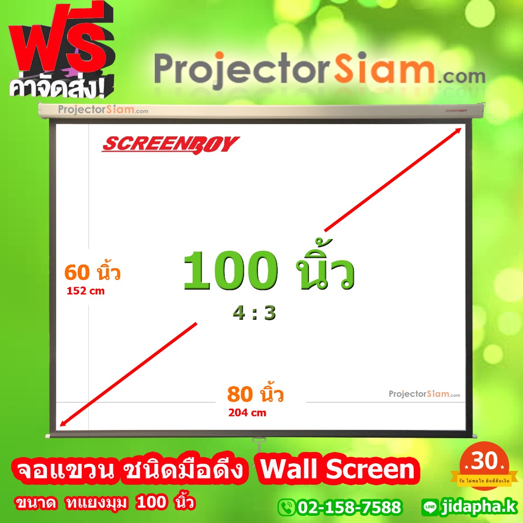 ScreenBoy Wall Screen 100 นิ้ว 4:3 จอแขวนมือดึง (60 x 80inch) (152 x 204 cm) สำหรับ ฉาย projector จอม้วนเก็บอัตโนมัติ