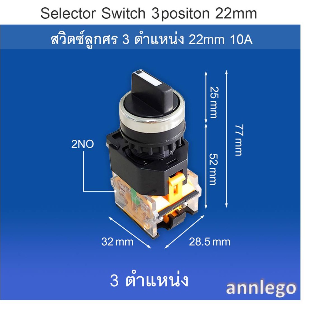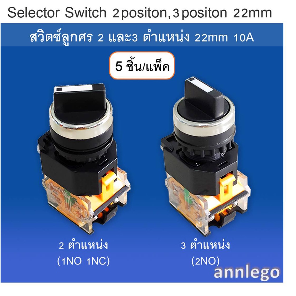 Selector Switch 2 and 3 positon สวิตซ์ลูกศร 2 และ 3 ตำแหน่ง ขนาด 22 มม. 10A (5ชิ้น/แพ็ค)
