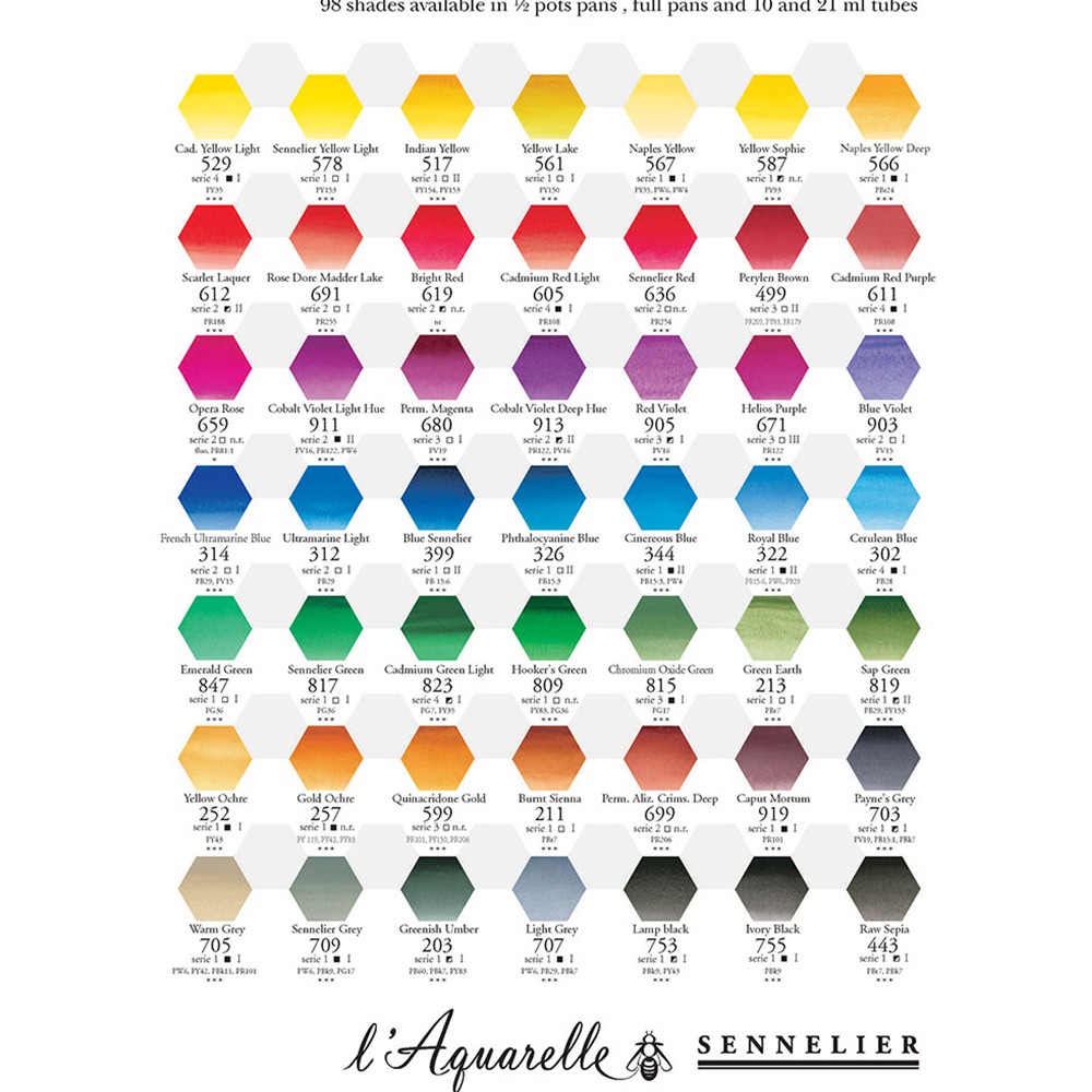 Sennelier สีน้ำเกรด Artist สูตรน้ำผึ้ง ขนาด 10 ml.ซีรี่ย์ 1