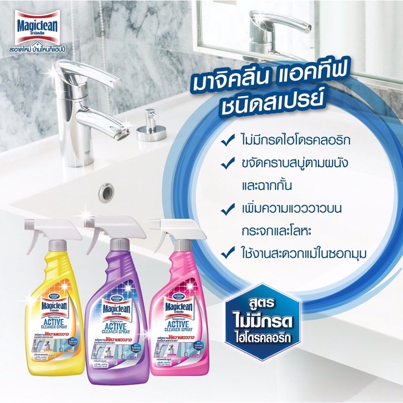 Magiclean มาจิคลีน แอคทีฟ คลีนเนอร์ ผลิตภัณฑ์ทำความสะอาดห้องน้ำ(ชนิดสเปรย์) ขนาด 500 มล.