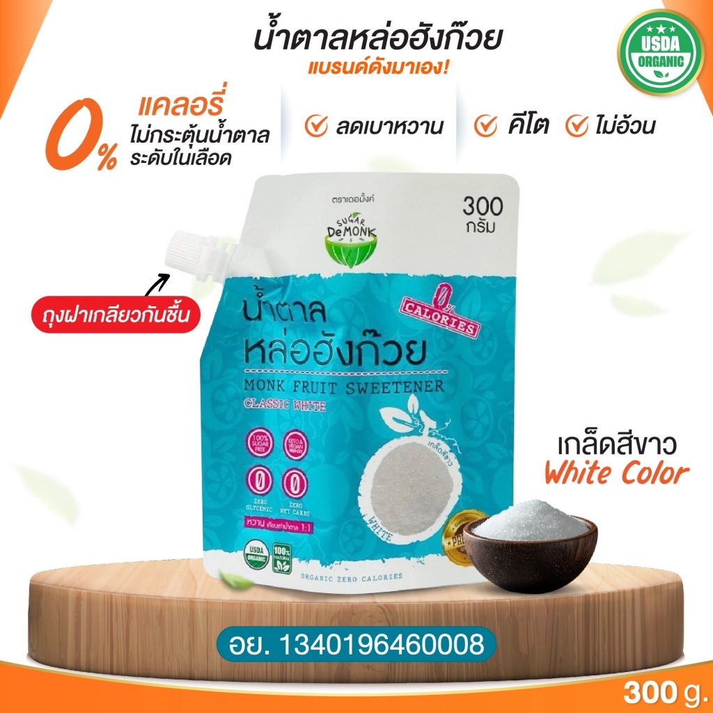 Sugar De Monk ซูการ์ เดอ มั้งค์ น้ำตาลหล่อฮังก๊วย Monk Fruit Sweetener (300 g)