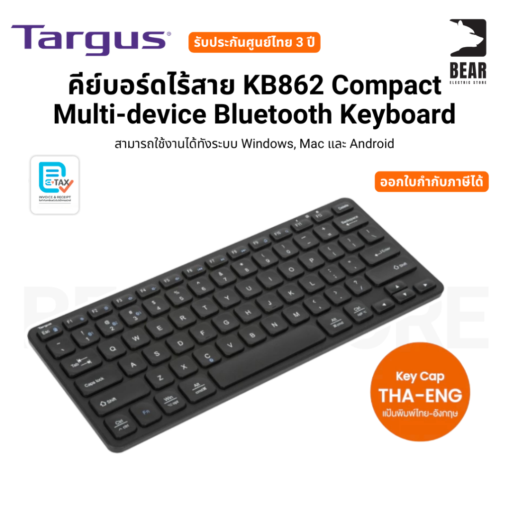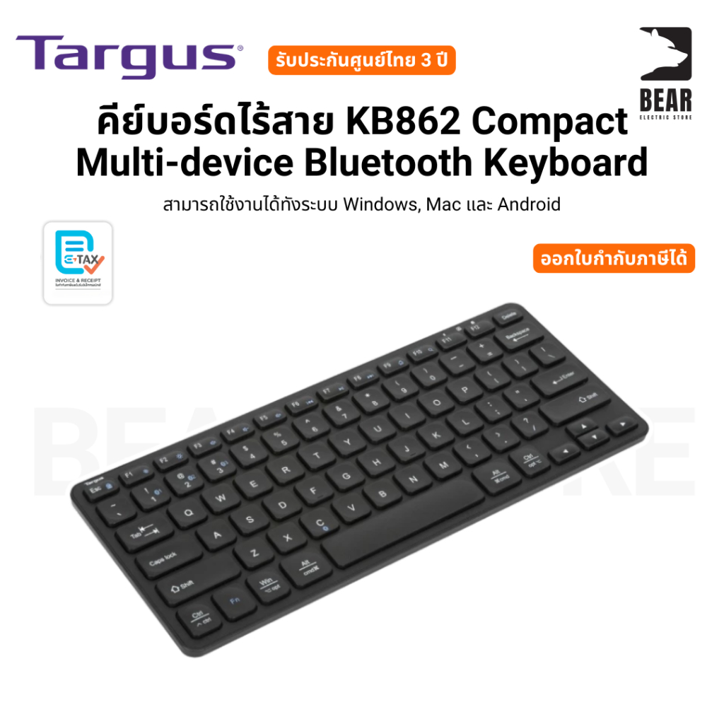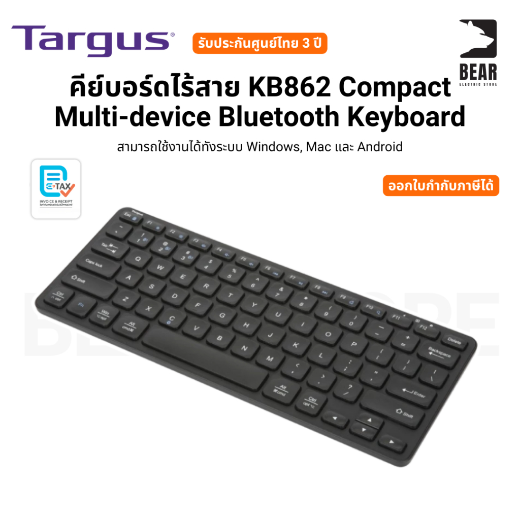 Targus คีย์บอร์ดไร้สาย KB862 Compact Multi-device Bluetooth Keyboardระบบ Windows, Mac และ Android รับประกันศูนย์ไทย 3 ปี
