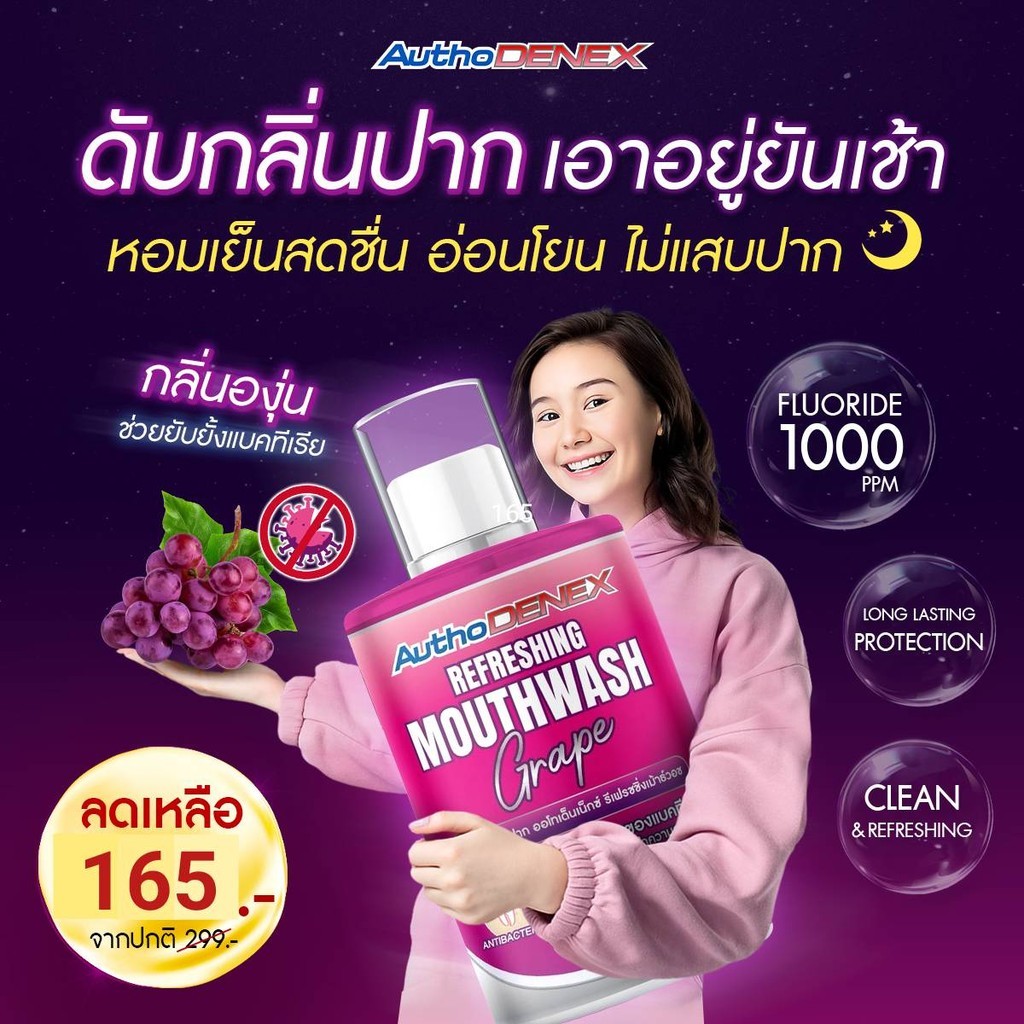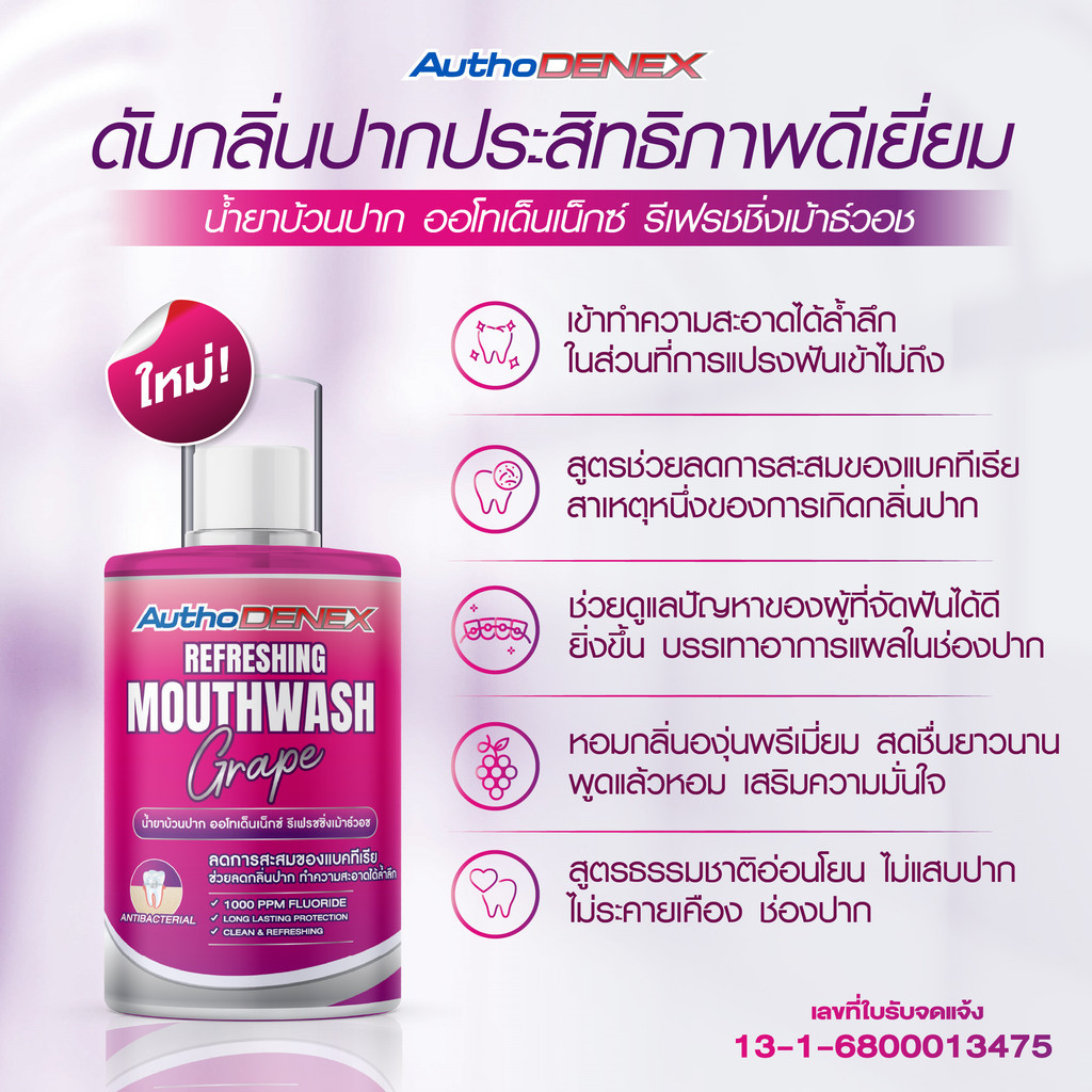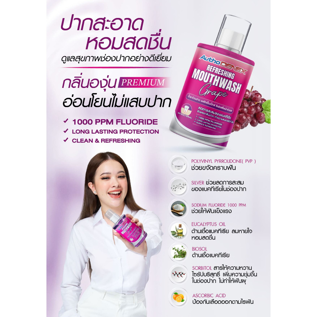 น้ำยาบ้วนปากออโทเด็นเน็กซ์ กลิ่นองุ่น ลดกลิ่นปากทั้งวัน AuthoDENEX Mouthwash with Silver ขนาด 300 ml