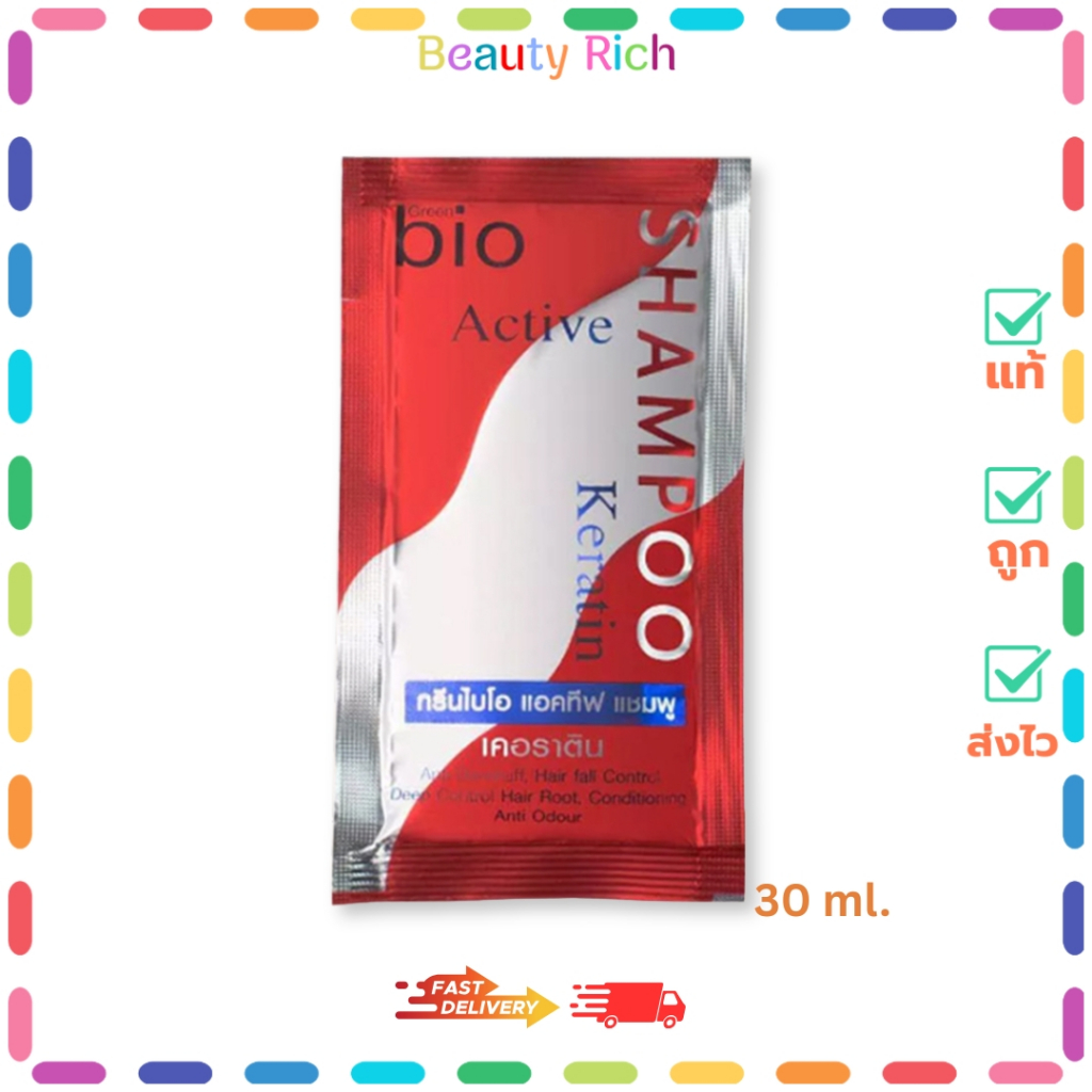 (1 ซอง) Green Bio Active Shampoo Keratin (แดง) กรีนไบโอ แอคทีฟ แชมพู เคอราติน (30 ml.)