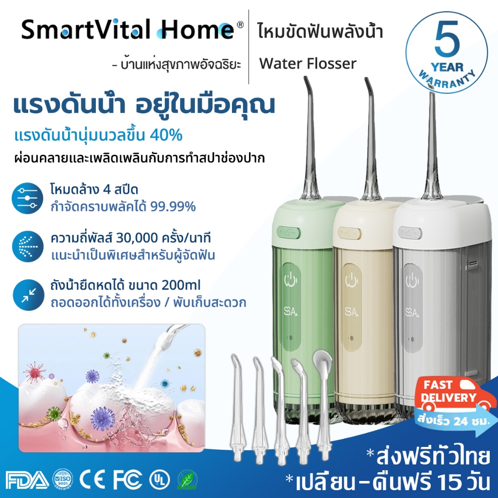 👍รับประกัน 5 ปี👍 ไหมขัดฟันพลังน้ำ 4 โหมด ขจัดคราบพลัค 99.99% IPX7 เครื่องทำความสะอาดฟัน เครื่องล้างฟันพกพา Water Flosser