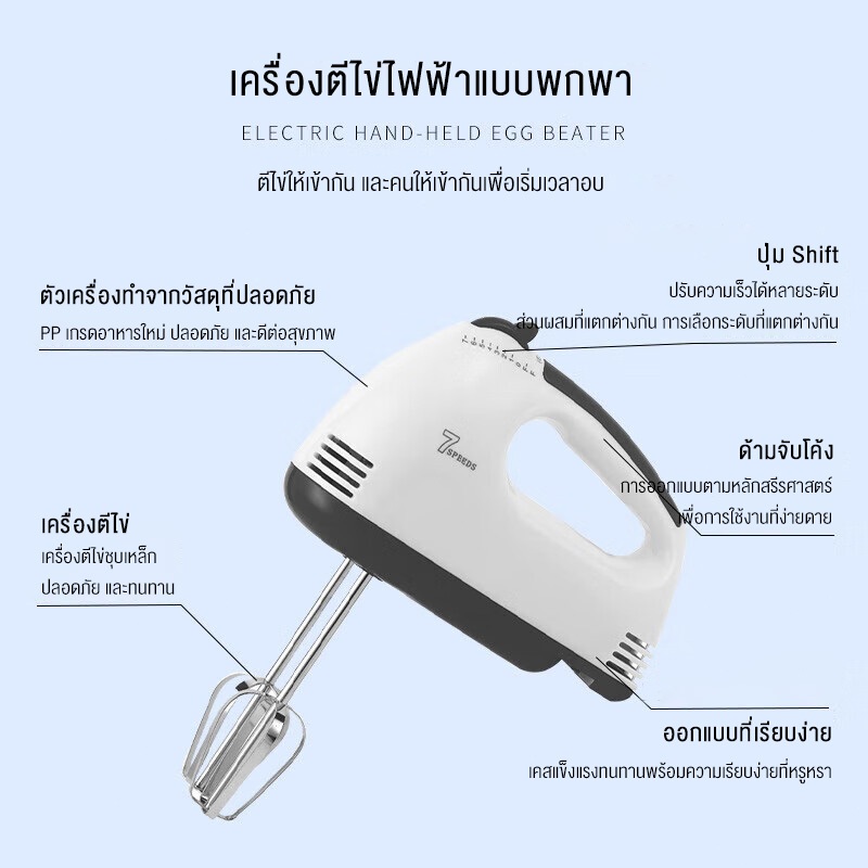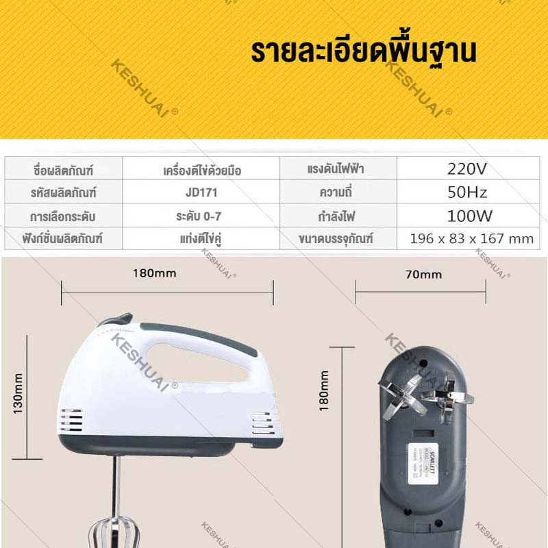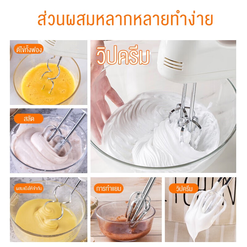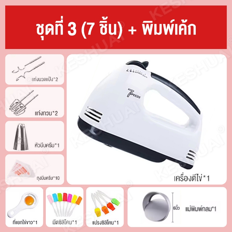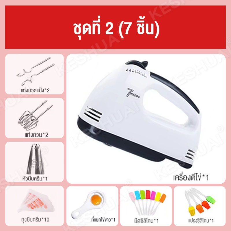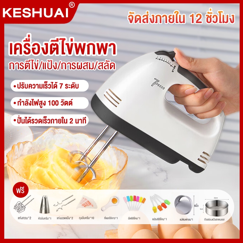 KESHUAI เครื่องปั่นผสมแป้งไฟฟ้า ควบคุมความเร็ว 7 สปีด ผสมอาหาร ตีไข่ ตีวิปครีม White Food Mixer