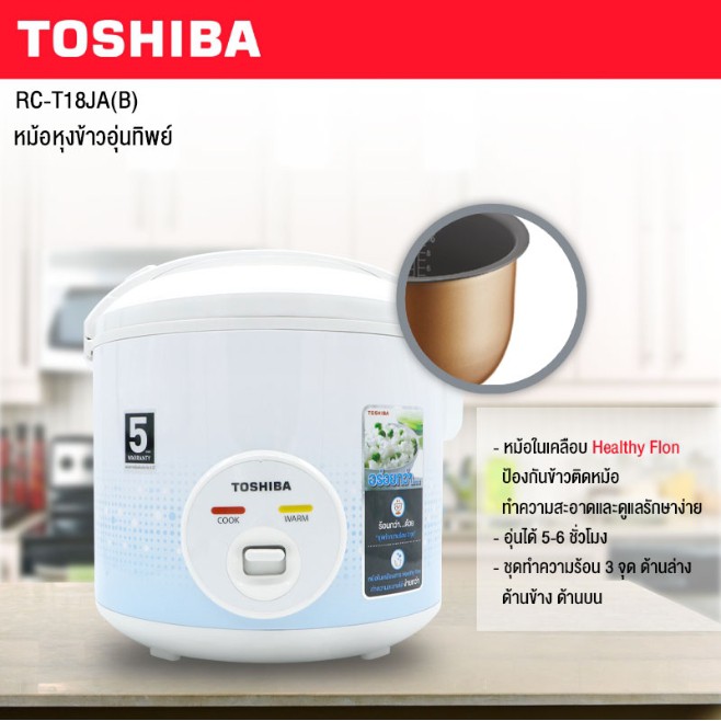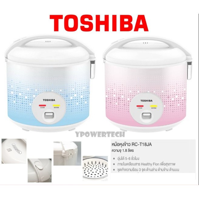 หม้อหุงข้าวอุ่นทิพย์ TOSHIBA รุ่น RC-T18JA 1.8 ลิตร หม้อเคลือบเทปล่อน