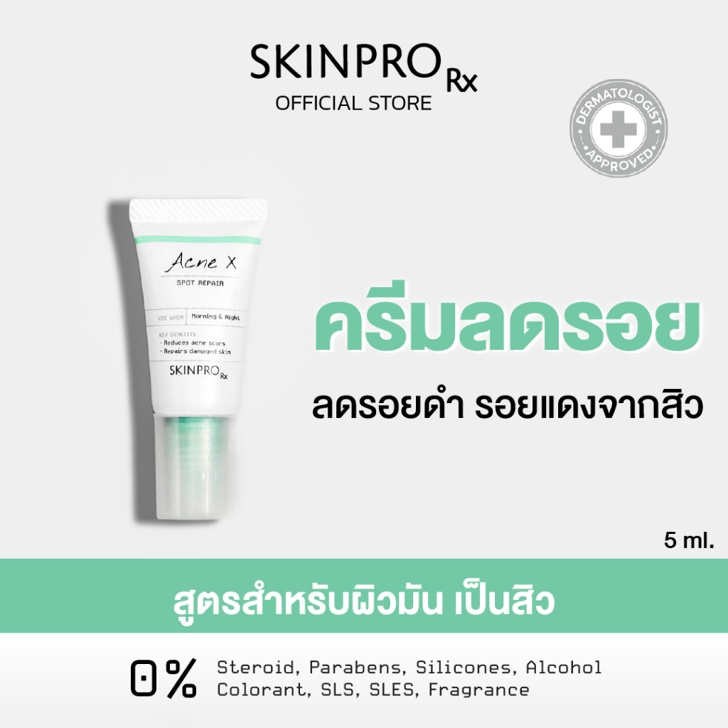 SKINPRO Rx Acne X Spot Repair 5ml ครีมลดปัญหารอยแผลจากสิว รอยแดง รอยดำ รอยแผล ลดการเกิดสิวซ้ำ