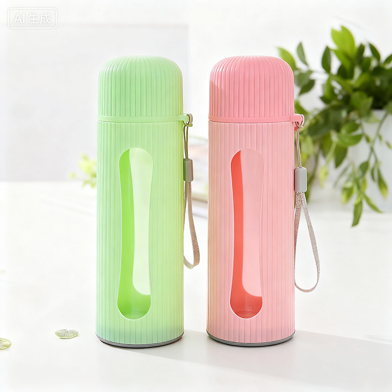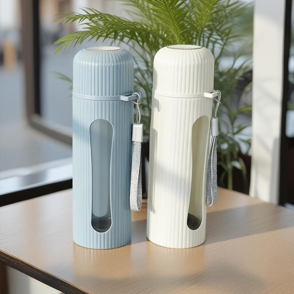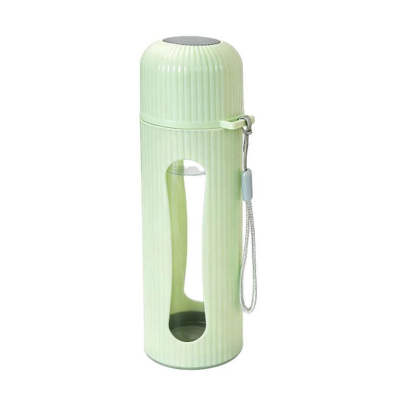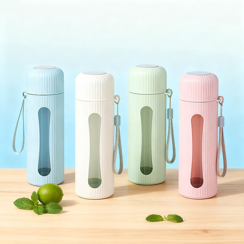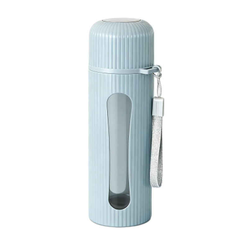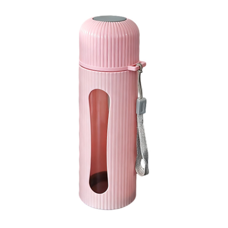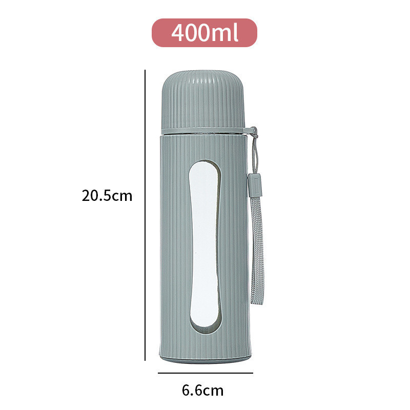 WED กระจกแก้วน้ำ 400ml สวยๆ ด้วยรูปร่างทรงกระบอกที่มีหน้าต่างใส และถุงพันสายสีเทา