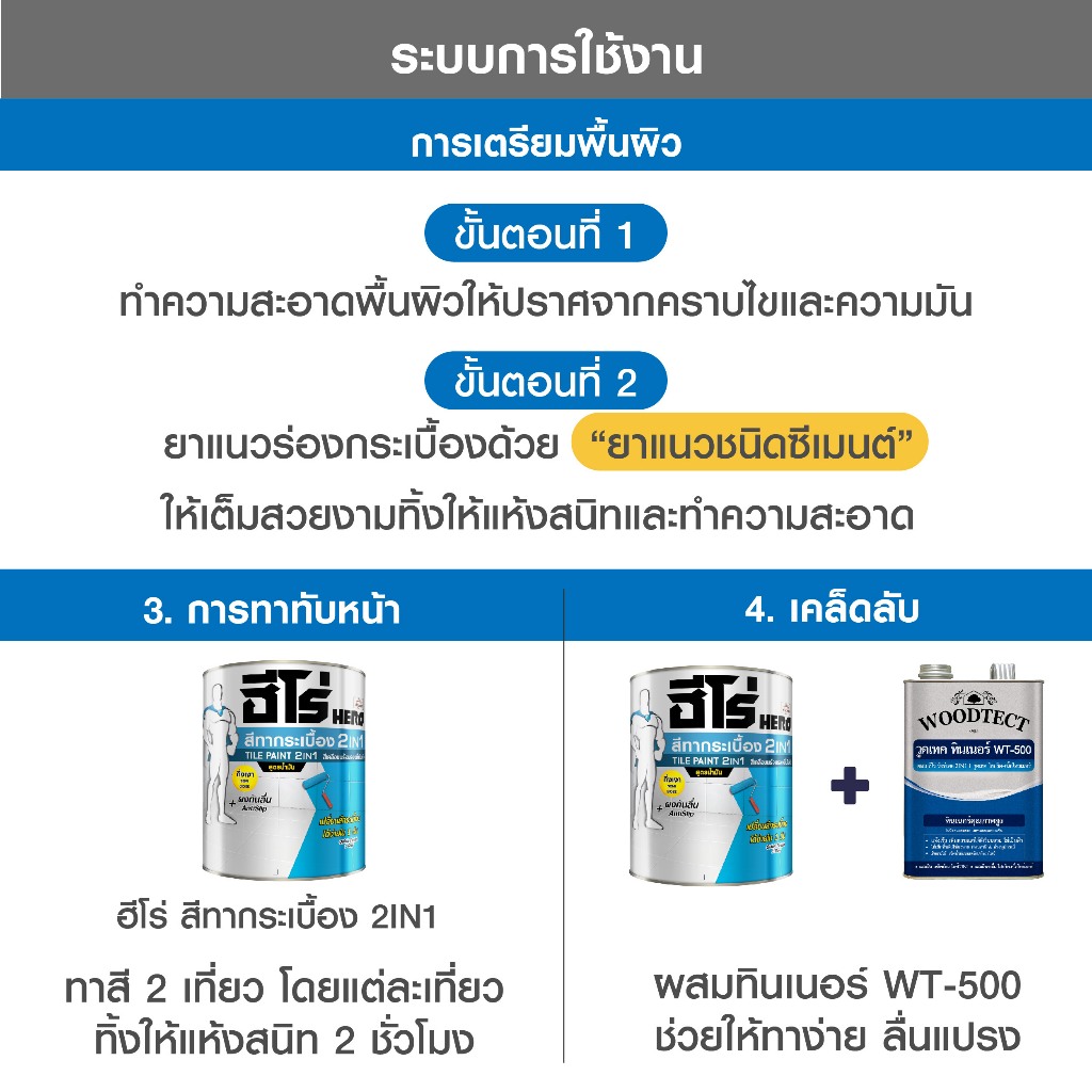 ฮีโร่ สีทากระเบื้อง เซรามิก 2IN1 สูตรน้ำมัน สำหรับพื้นและผนัง HERO Tile Paint 2IN1 SB