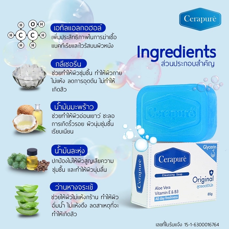 Cerapure Soap สบู่ก้อนดับกลิ่นกายเซราพิวเร่ กลิ่นOriginal สีฟ้า