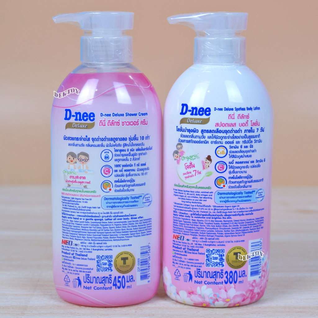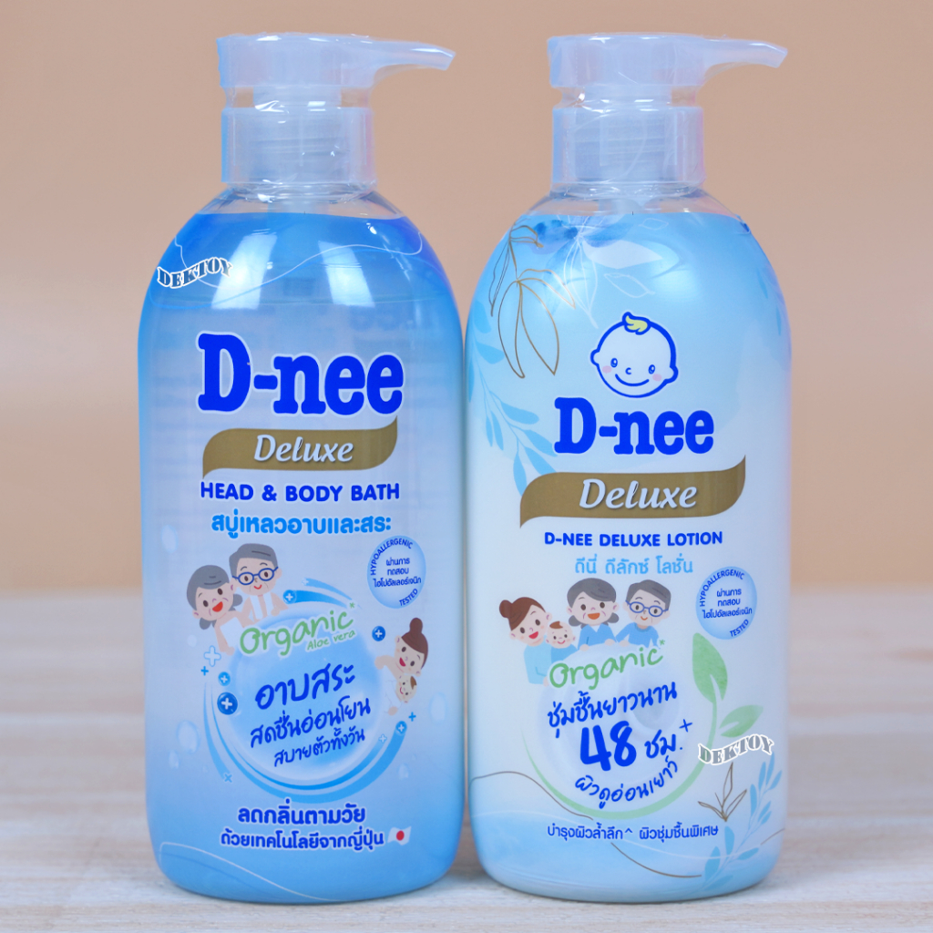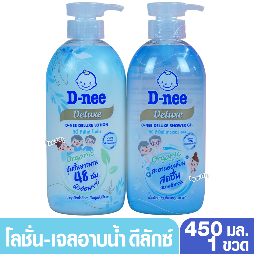 D-nee Organic ดีนี่ ดีลักซ์ โลชั่น และ เจลอาบน้ำ บำรุงผิวชุ่มชื้น 48 ชม. สำหรับทุกช่วงวัย 380และ450 มล.