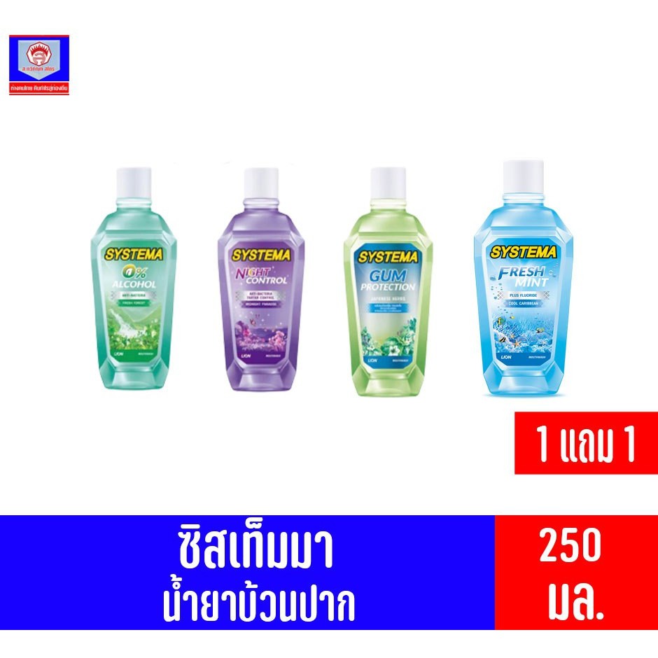 ซิสเท็มมา น้ำยาบ้วนปาก พิเศษ 1 แถม 1 ขนาด 250 มล. ทั้ง 4 สูตร