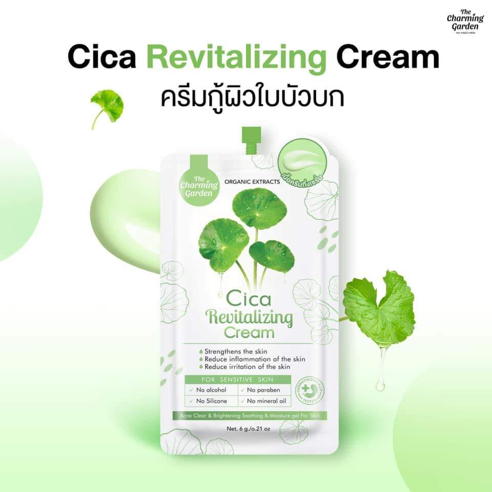 ครีมซิก้า(1ซอง) Cica Revitalizing Cream The Charming garden ชามมิ่ง ใบบัวบก ครีมกู้ผิว เจลใบบัวบก