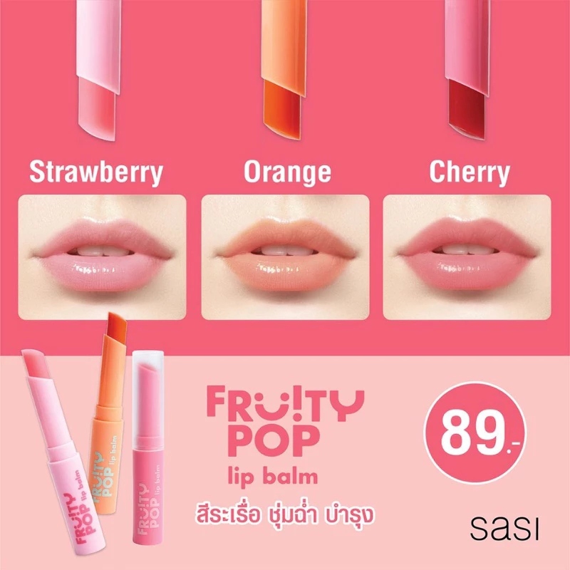 (1 แท่ง) Sasi Fruity Pop Lip Balm ศศิ ฟรุตตี้ ป๊อป ลิป บาล์ม #03 Cherry (1.5 g.)