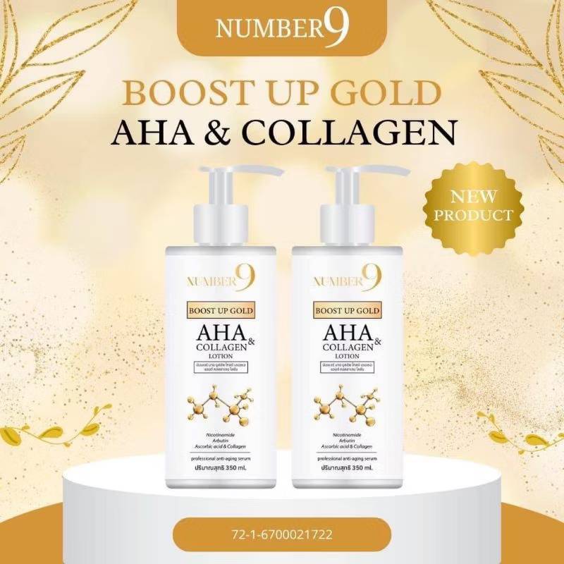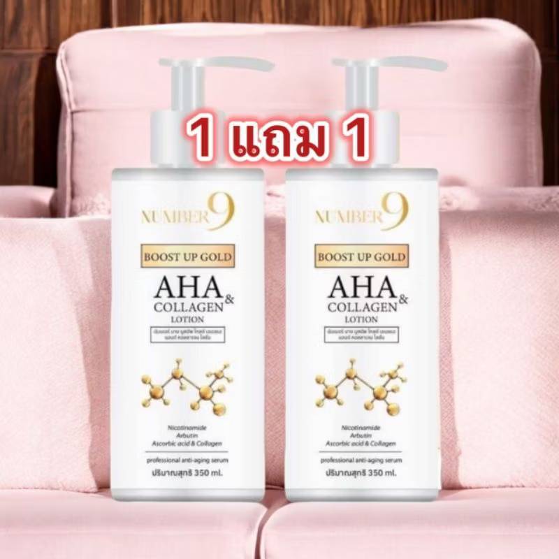 1 แถม 1 โลชั่นทองคำผสมคอลลาเจน AHA 500 ml. นับเบอร์ไนน์ ผิว มอยเจอร์ไรเซอร์