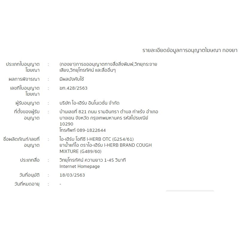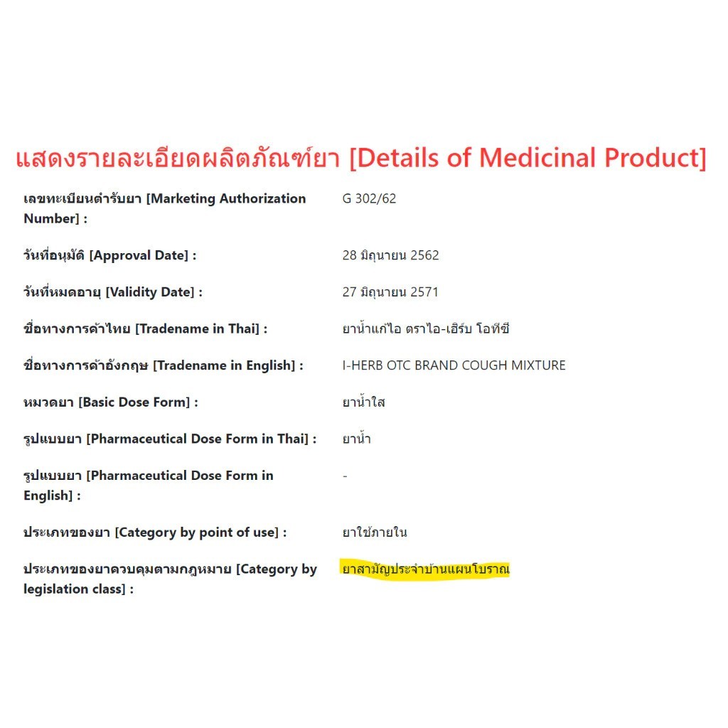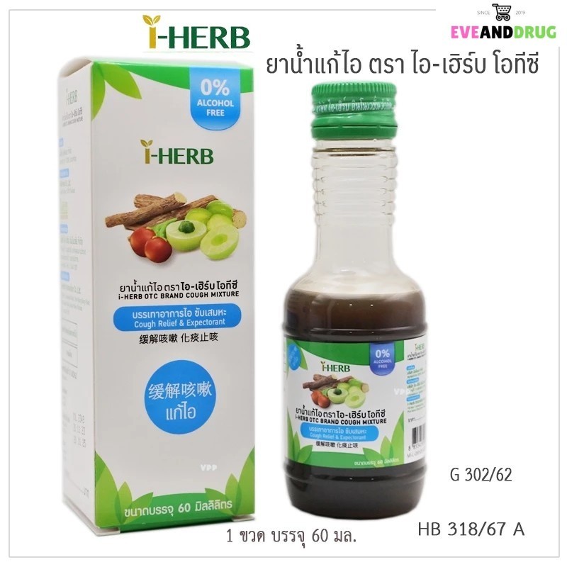 I-Herb OTC ยาน้ำแก้ไอ ไอ-เฮิร์บ โอทีซี บรรเทาอาการไอ ขับเสมหะ 1 ขวด 60 มล. ผสมมะขามป้อม มะแว้ง ฯลฯ ทะเบียนยา G 302/62