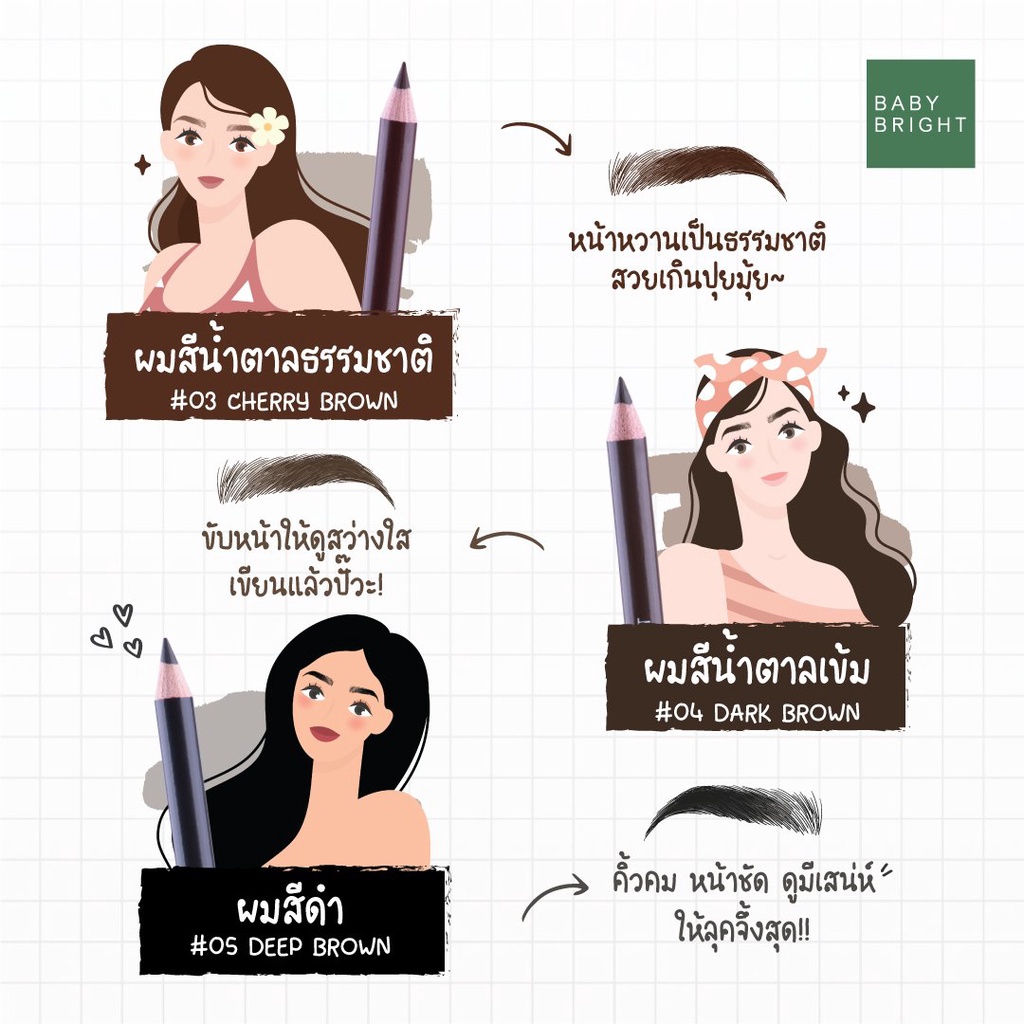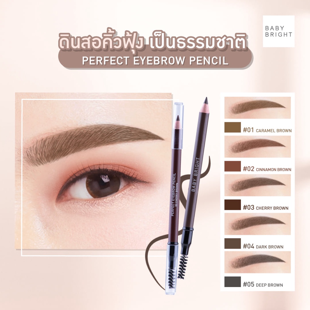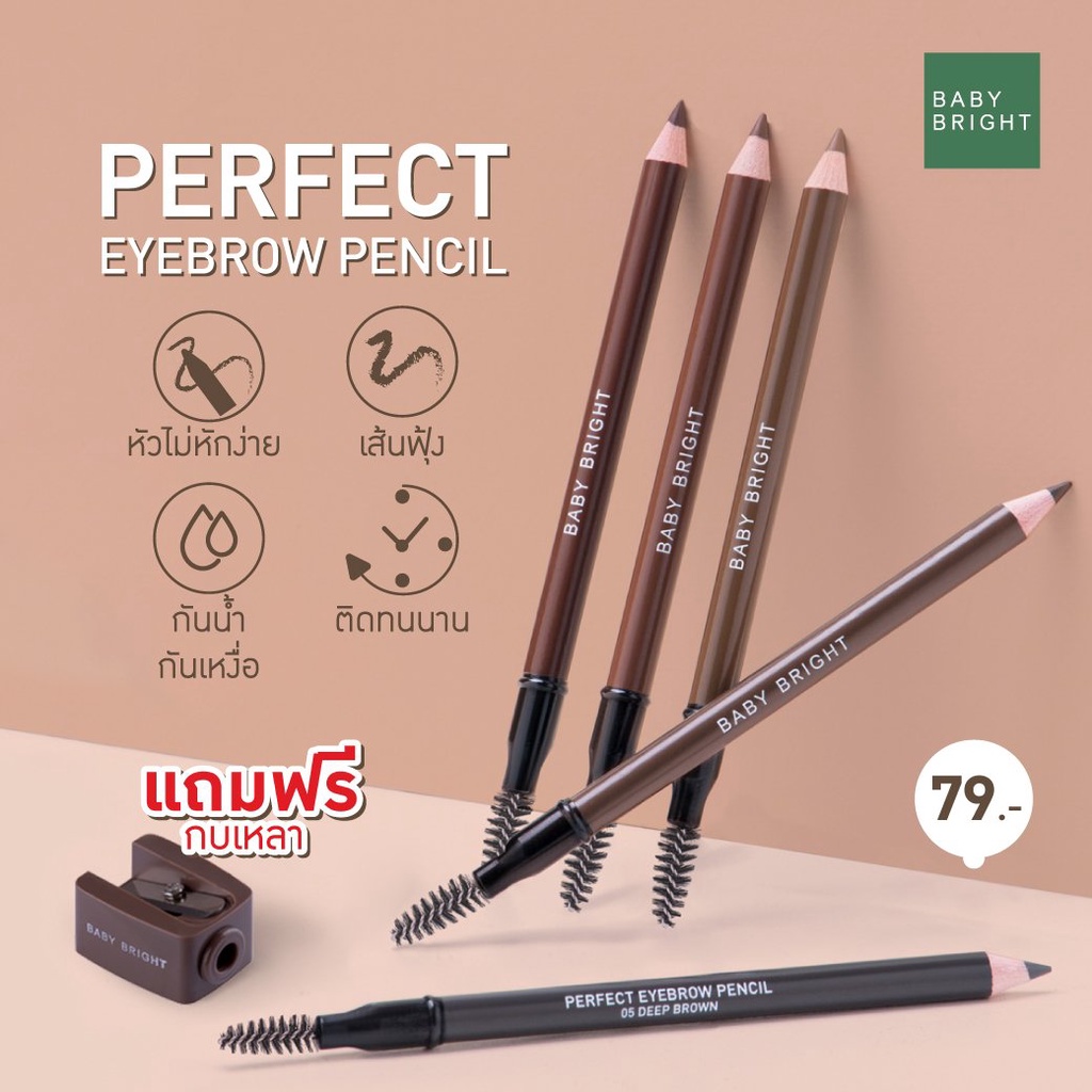 ดินสอเขียนคิ้ว+กบเหลา BABY BRIGHT PERFECT EYEBROW PENCIL ดินสอไม้เขียนคิ้ว ชนิดเหลา