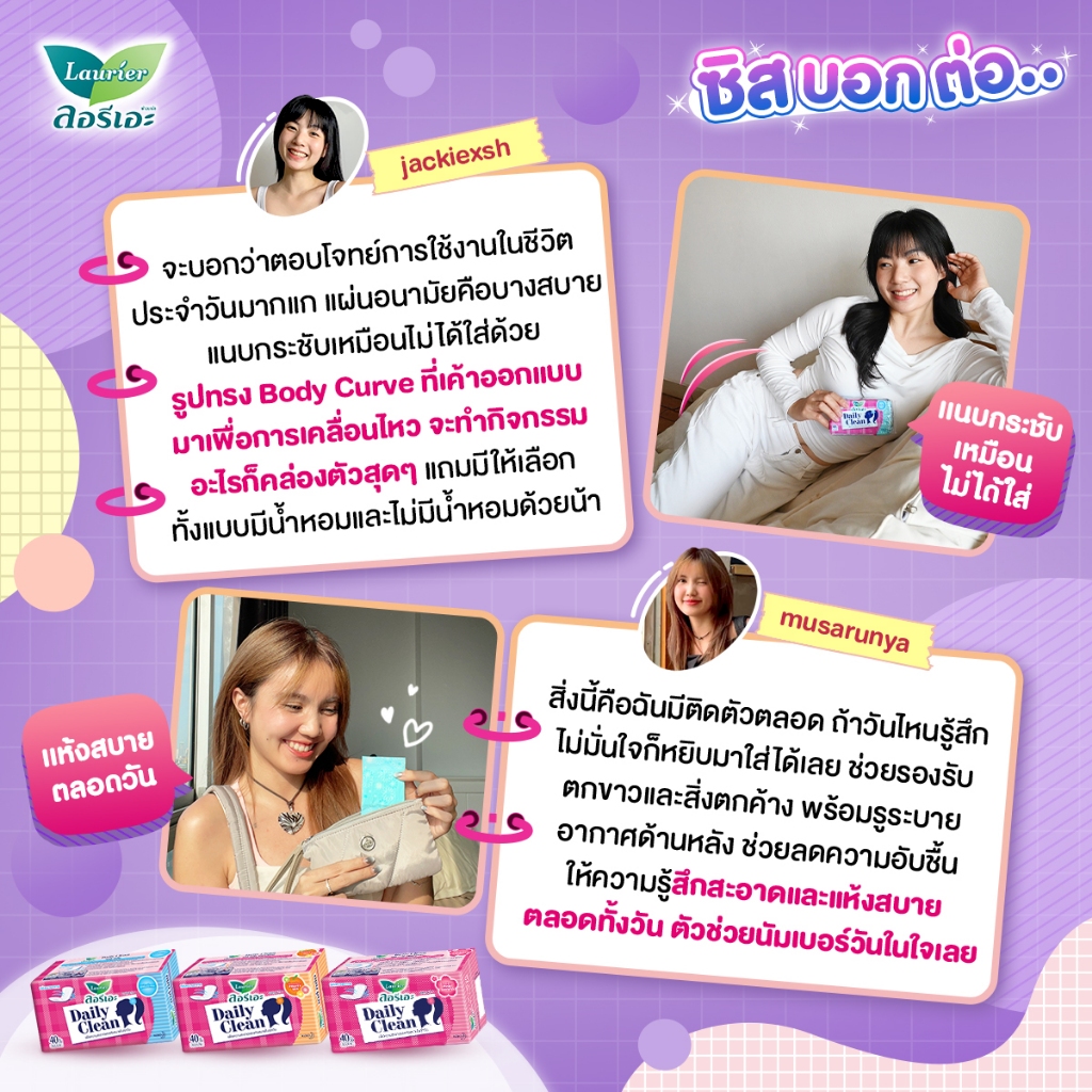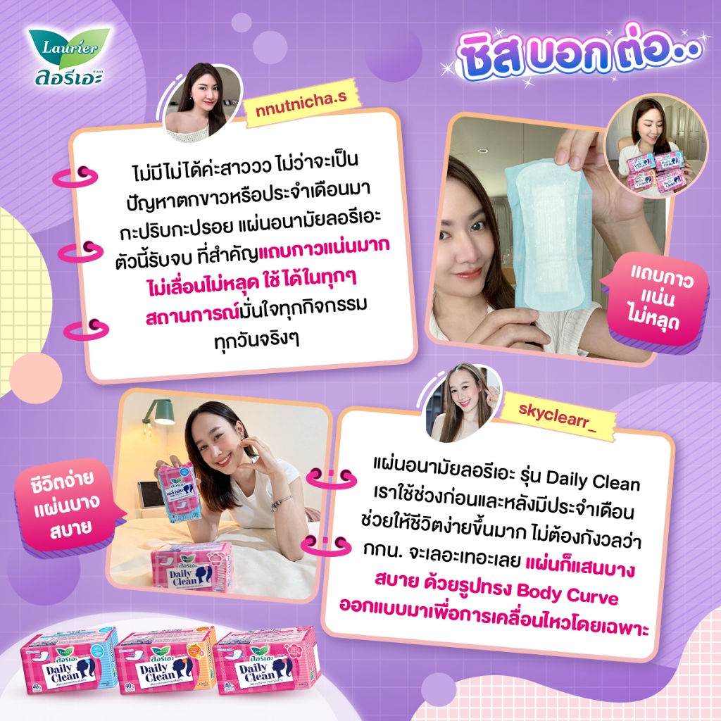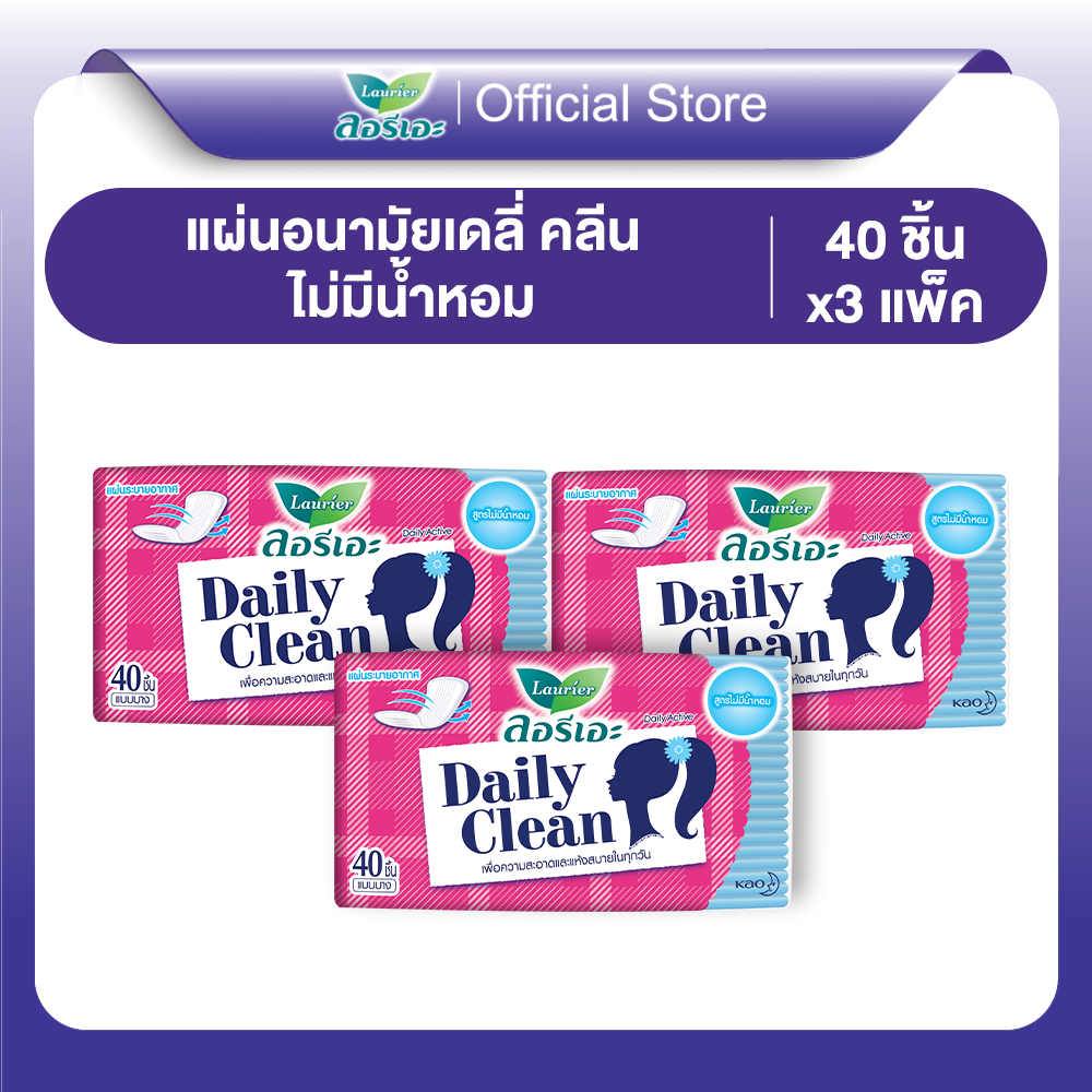 [แพ็ค3] ลอรีเอะ เดลี่ คลีน แบบไม่มีน้ำหอม 40 ชิ้น Laurier PantyLiner DailyClean แผ่นอนามัย