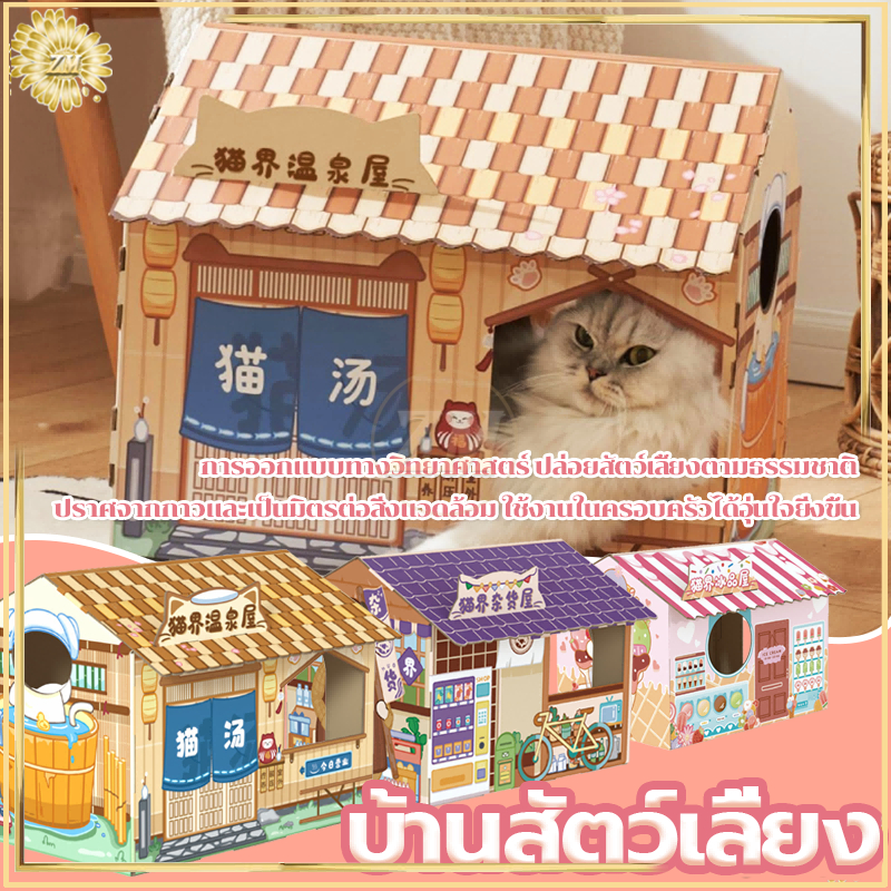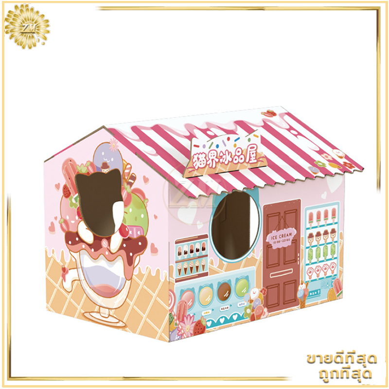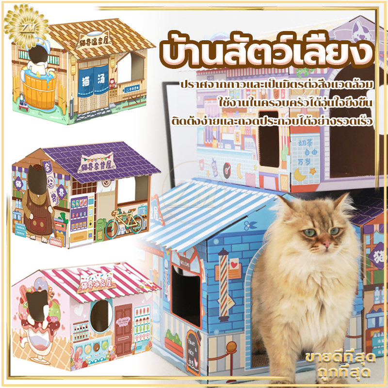 บ้านเเมว บ้านสัตว์เลี้ยง บ้านแมวกระดาษ ส่งกระดานตีนแมว บ้านลับเล็บแมว เตียงแมว/แบบบ้านแมว ของใช้แมว น่ารัก ติดตั้งง่าย