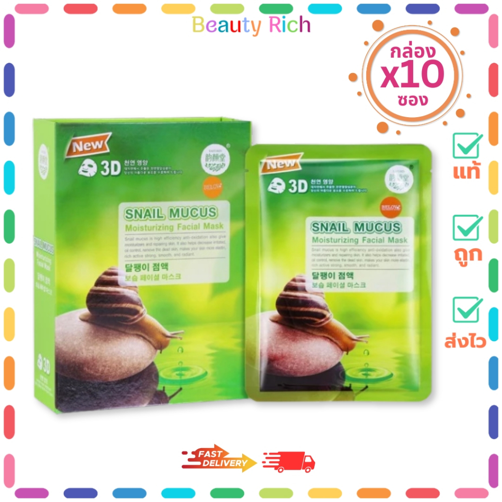 (กล่อง 10 ซอง) East-Skin Mask แผ่นมาส์คหน้าดับเบิ้ล 3D สูตรหอยทาก (ปริมาณ 38 ml.)