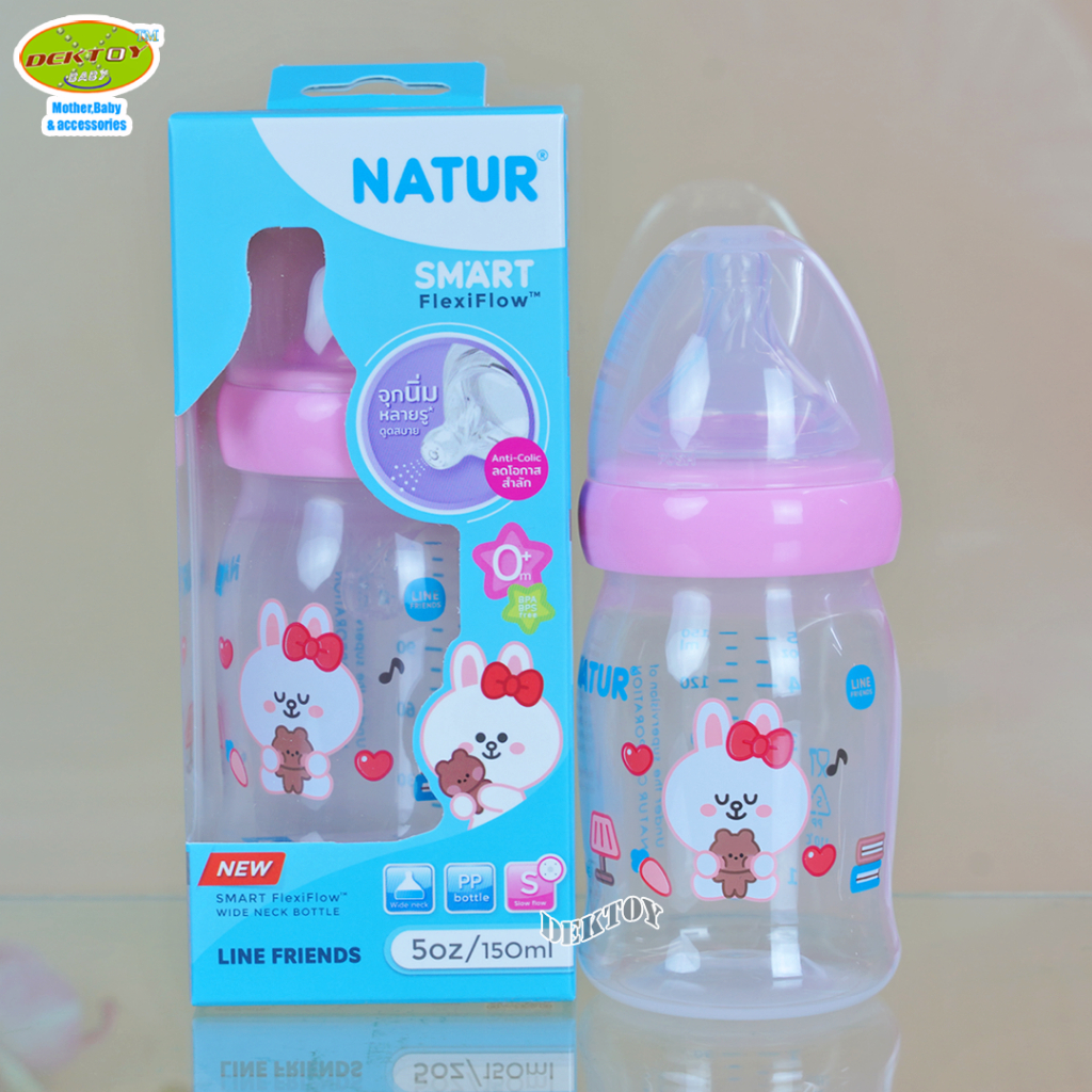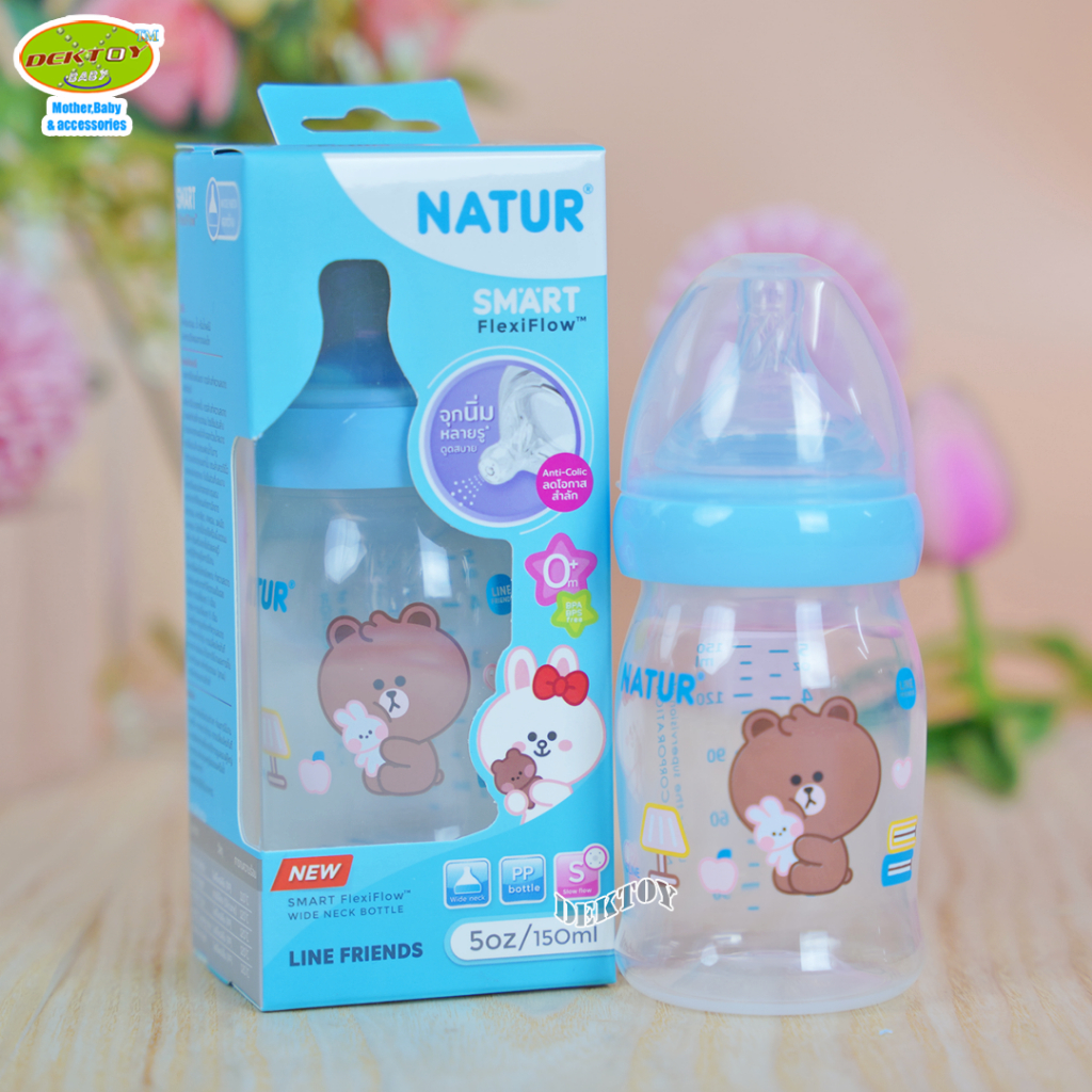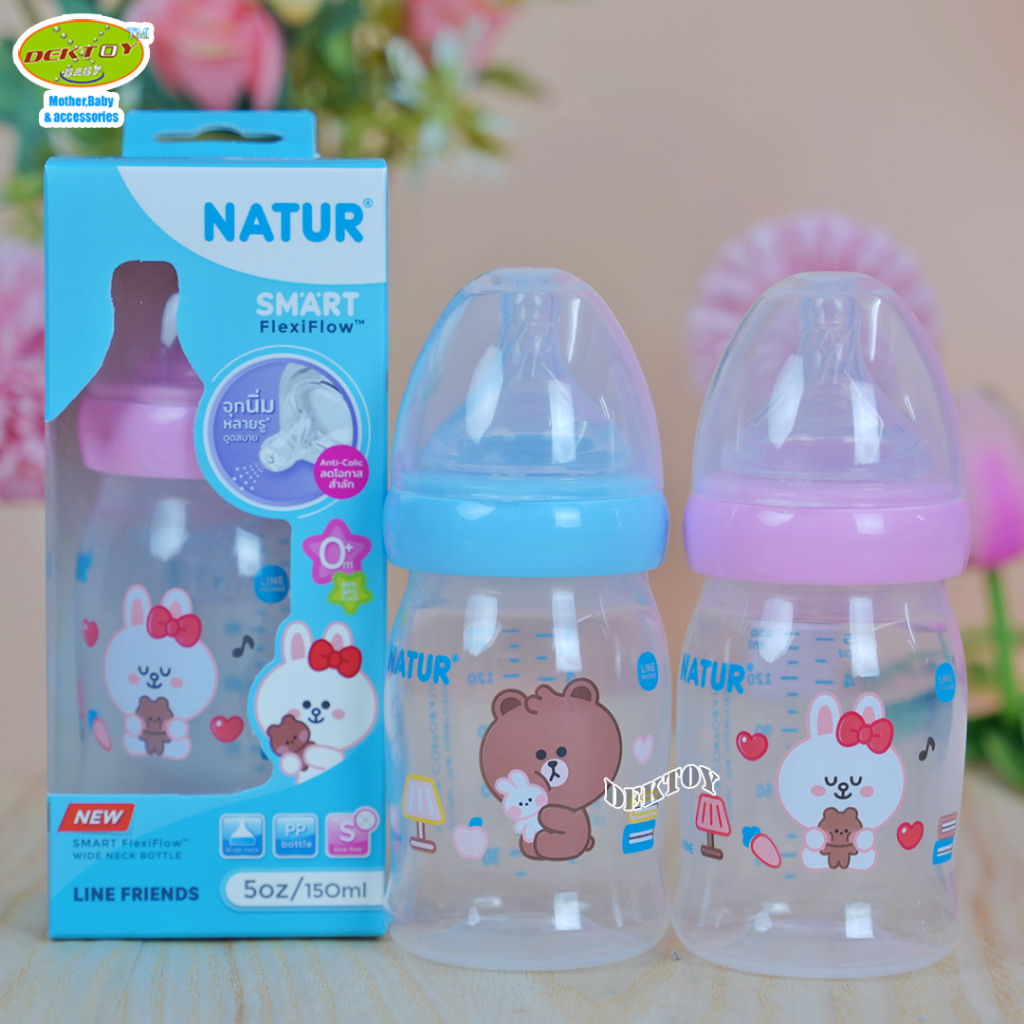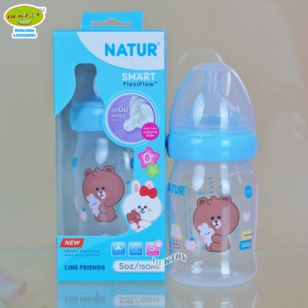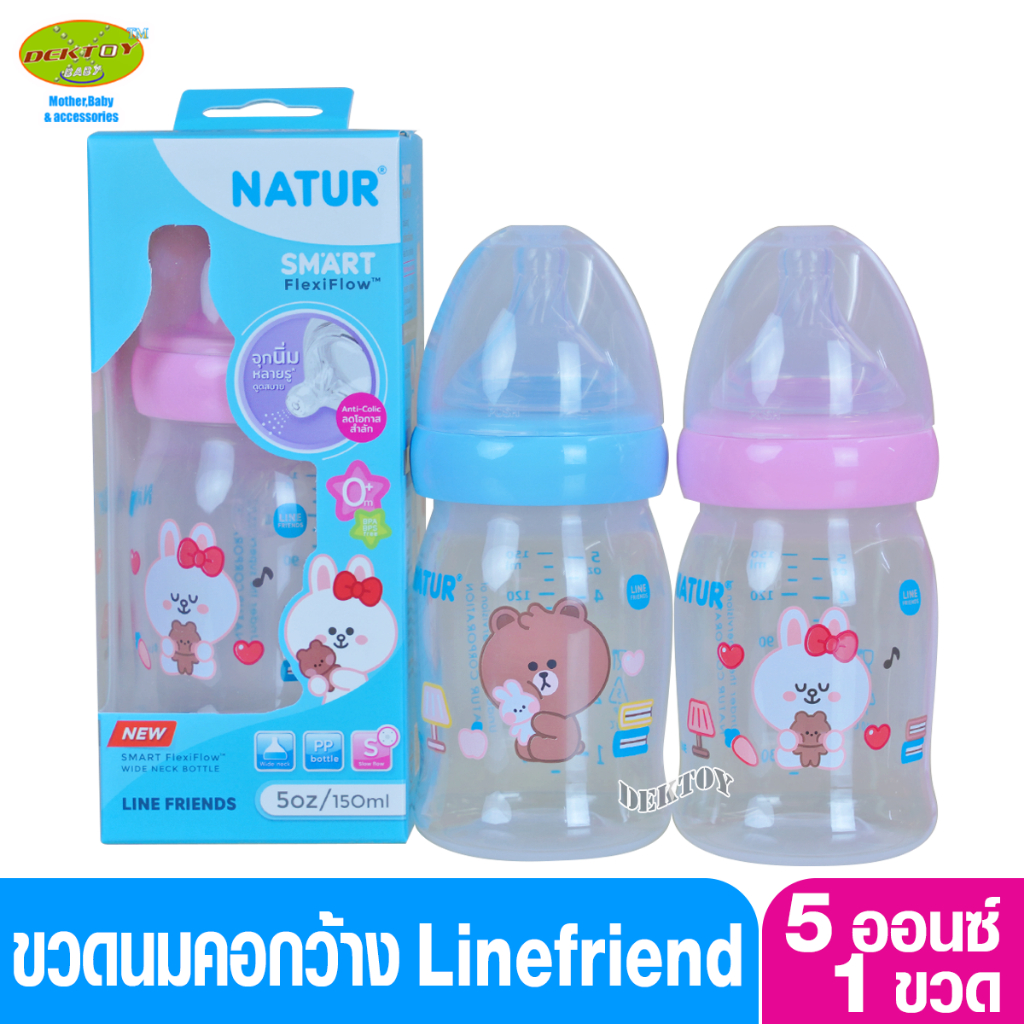 1 ขวด LINE FRIENDS Natur เนเจอร์ ขวดนมคอกว้างสมาร์ท จุกนิ่มหลายรู ดูดสบาย PP 5 ออนซ์ ขวด 20011
