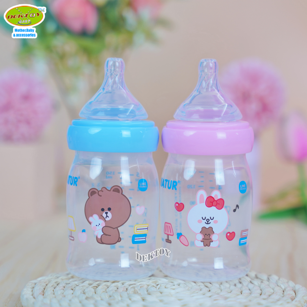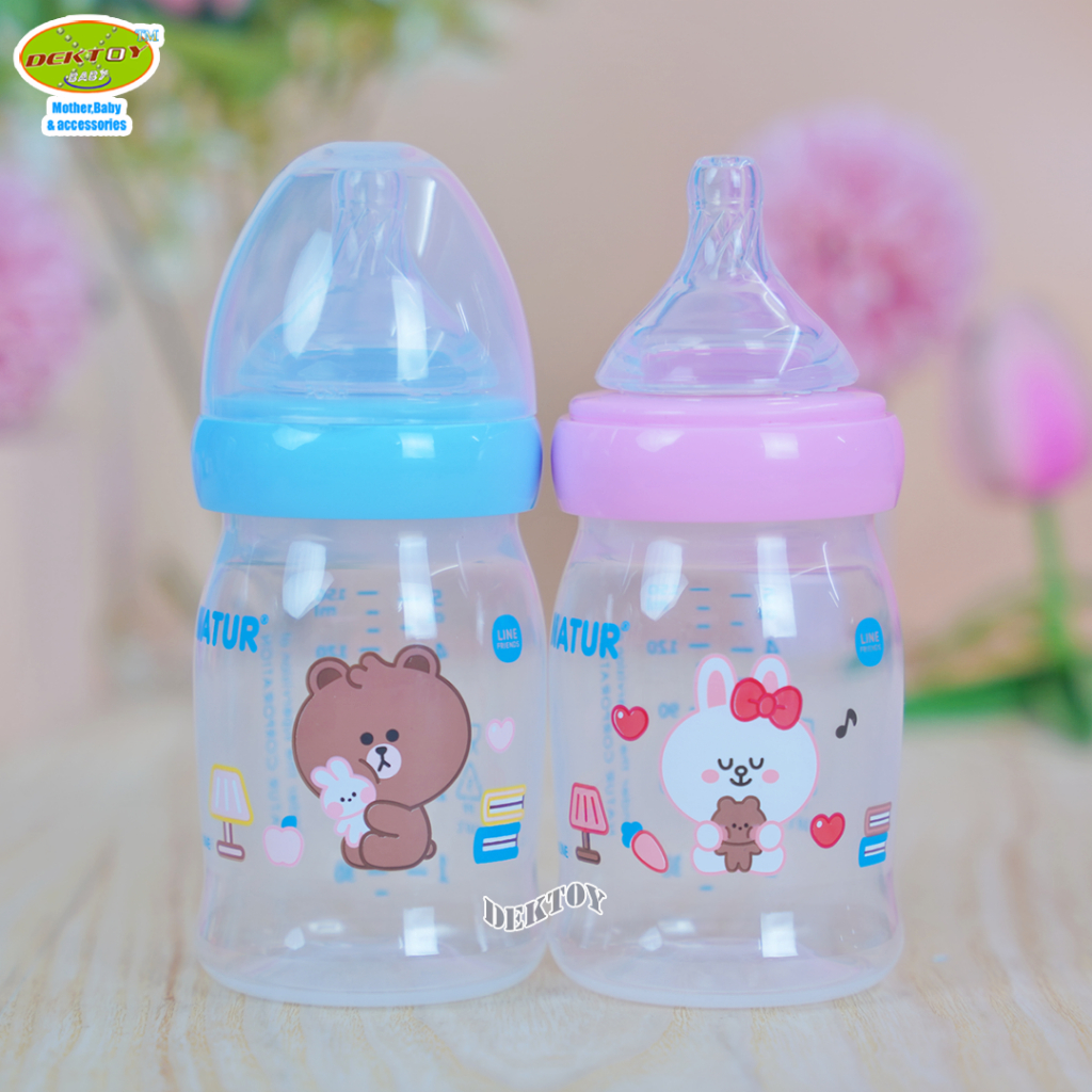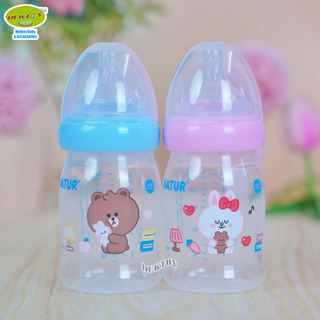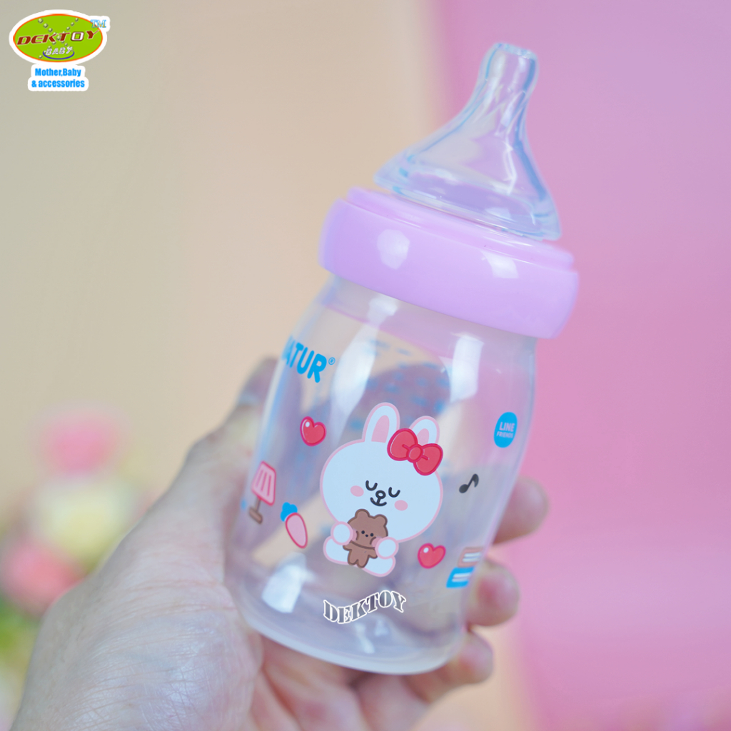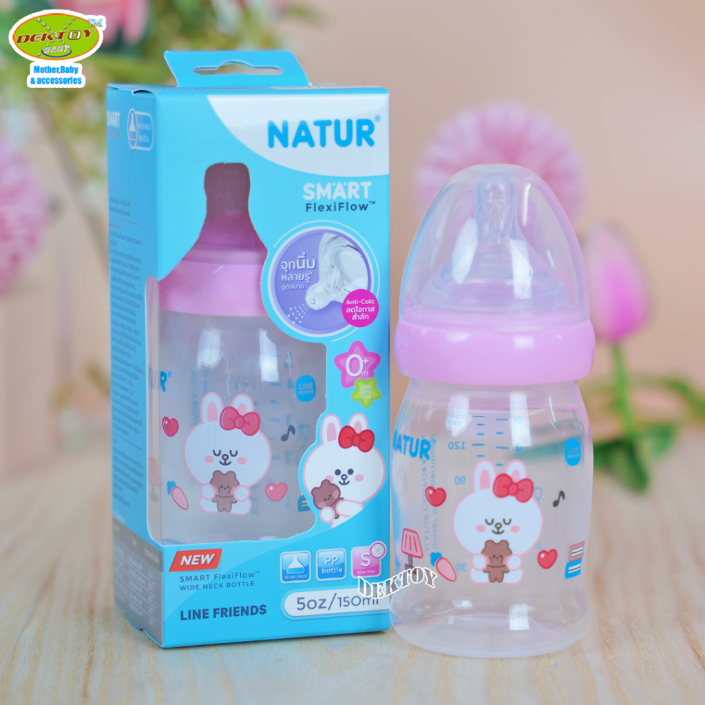 1 ขวด LINE FRIENDS Natur เนเจอร์ ขวดนมคอกว้างสมาร์ท จุกนิ่มหลายรู ดูดสบาย PP 5 ออนซ์ ขวด 20011