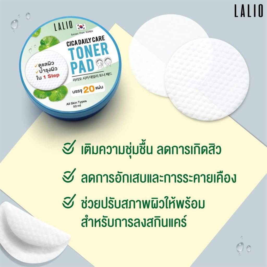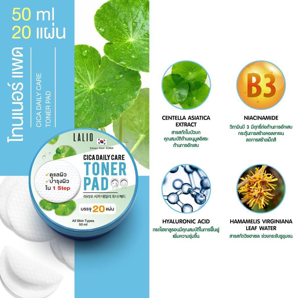 1กล่อง/3ชิ้น Lalio Cica Daily Care Toner Pad 20 pad ลาลิโอ ซิกา เดรี่ แคร์ โทนเนอร์ แพด