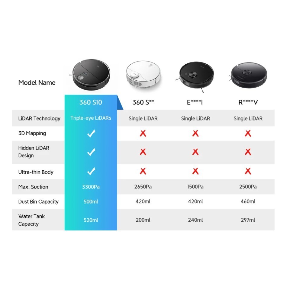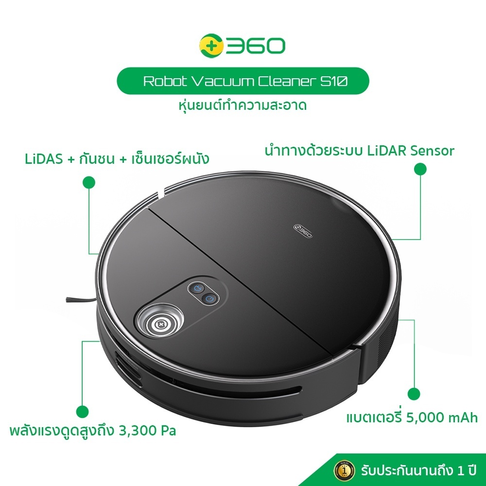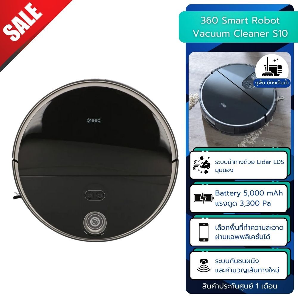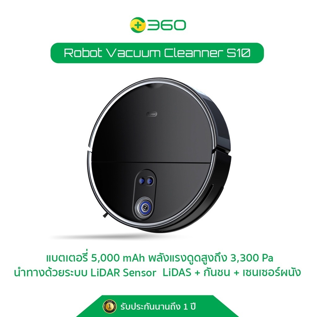 360 หุ่นยนต์ทำความสะอาดถูพื้น Smart Robot Vacuum Cleaner S10 บางพิเศษ ทำงานได้ใต้โฟซาและใต้เตียง