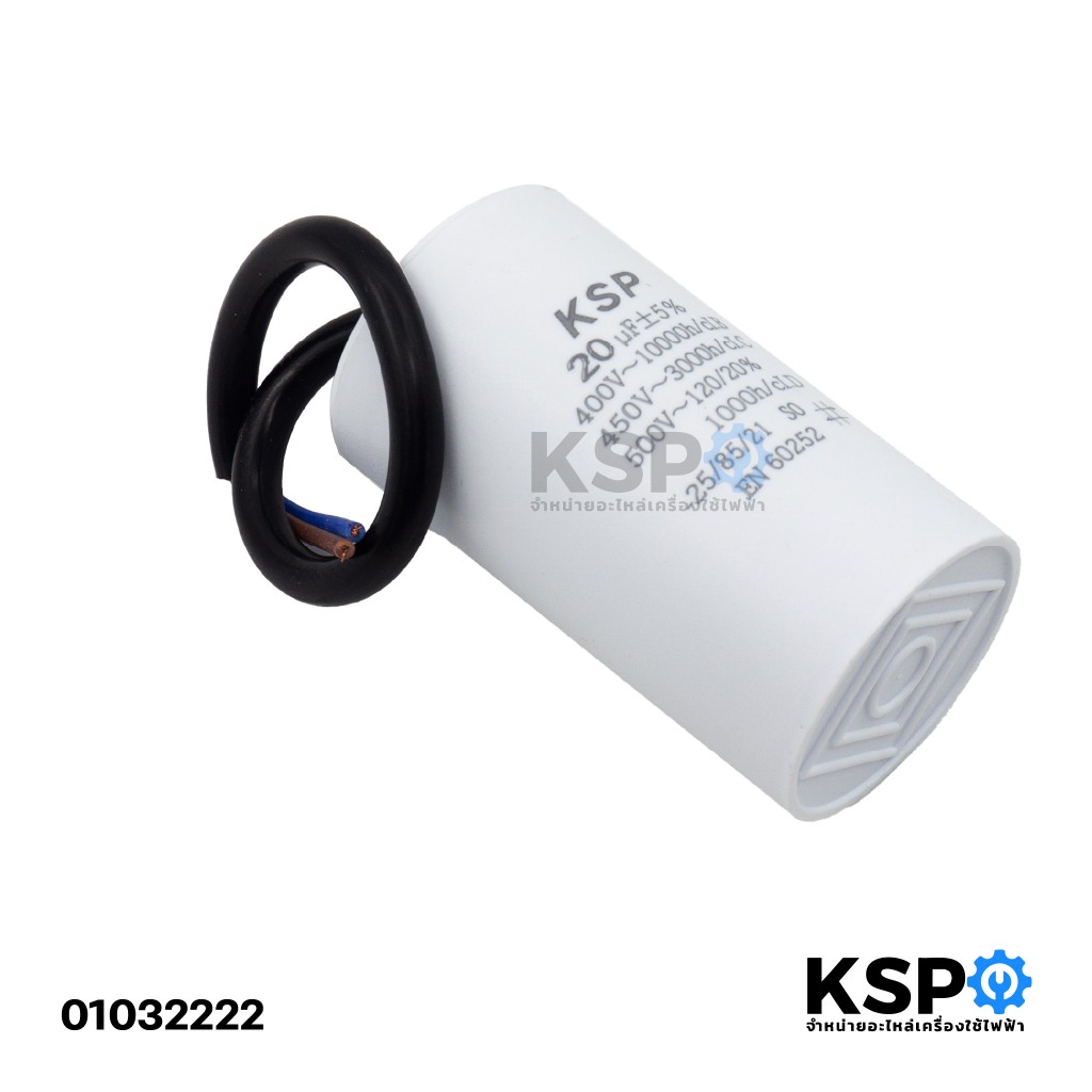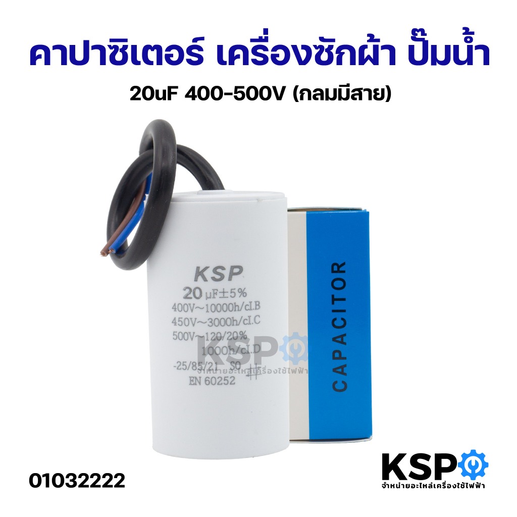 คาปาซิเตอร์ เครื่องซักผ้า ปั๊มน้ำ 20uF 400-500V (กลมมีสาย) อะไหล่เครื่องซักผ้า