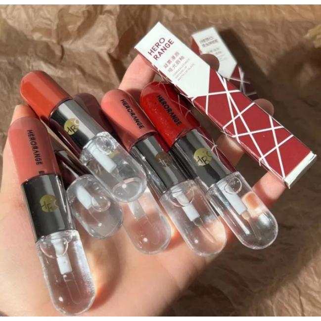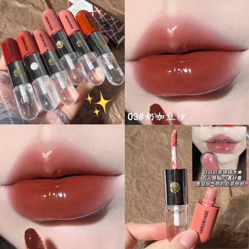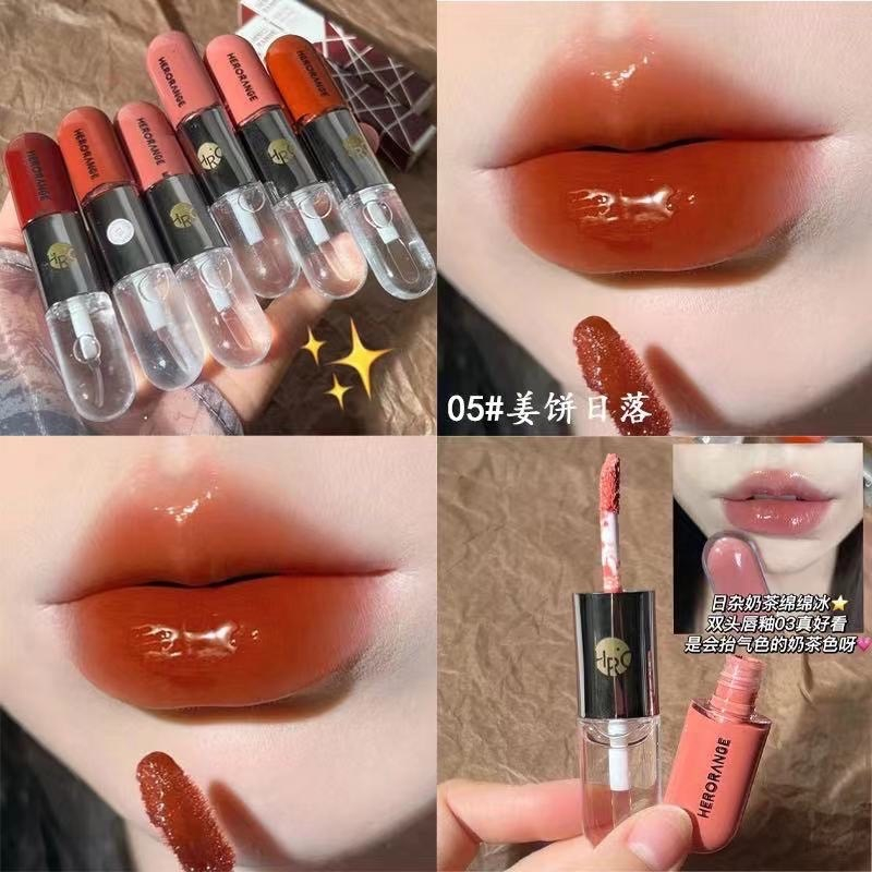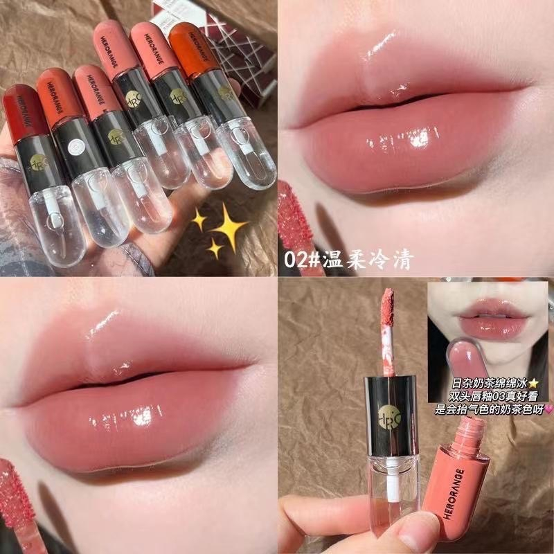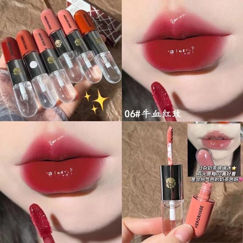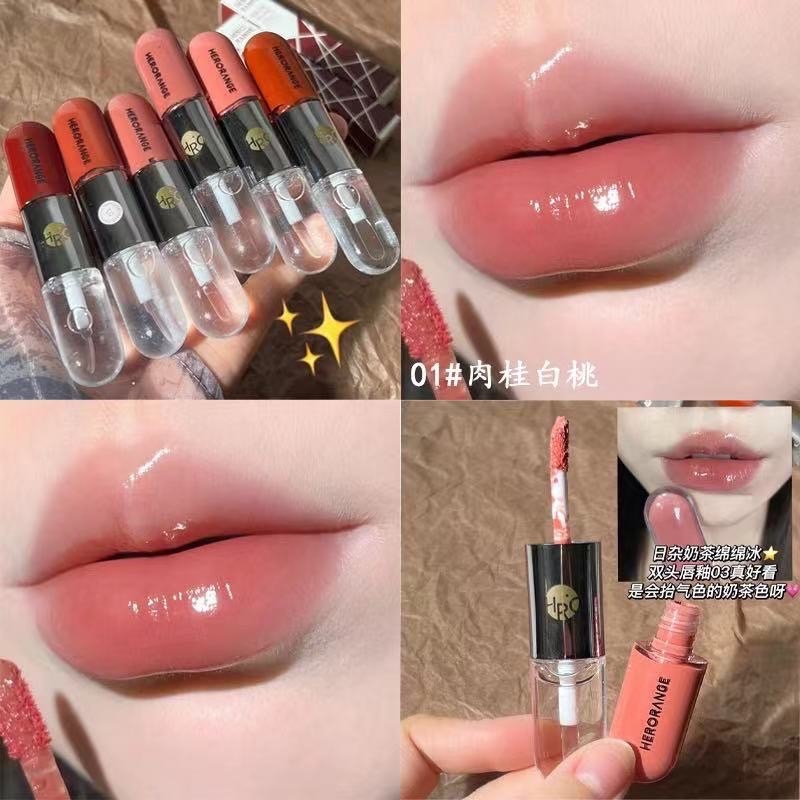 ลิป Herorange ลิปกลอส แบบสองหัว เคลือบน้ำใส กันน้ำ Lip ติดทนนาน ชุ่มชื้น M344