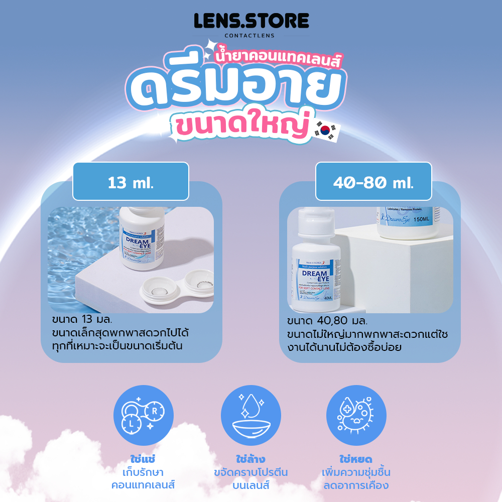Dream Eye ดรีมอาย น้ำยาล้างคอนแทคเลนส์ 40-80 มล. ล้าง เเช่ หยด ขจัดคราบโปรตีนบนเลนส์