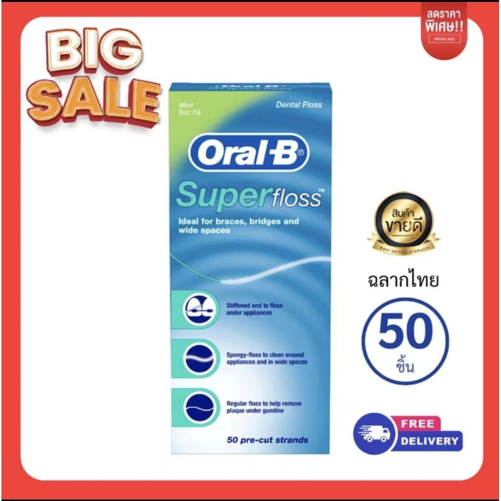 [ส่งฟรี] Exp.2028 ไหมขัดฟัน oral B super floss 50 ชิ้น ออรัล บี
