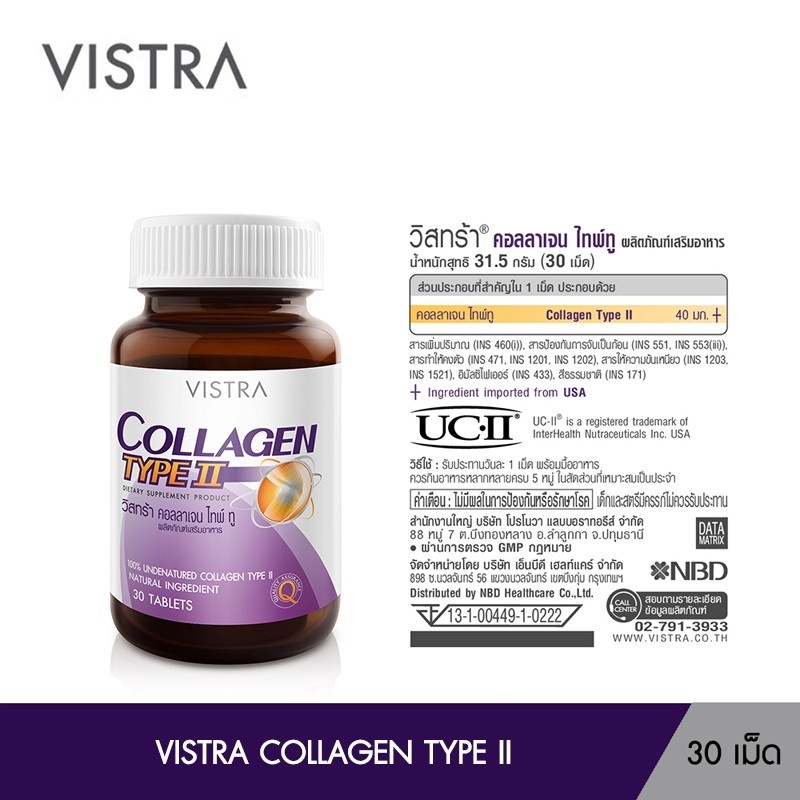 VISTRA COLLAGEN TYPE II (30 Caps)"คอลลาเจน ไทพ์ทู" สำหรับผู้ที่มี โรคข้อเข่าเสื่อม อาการปวดเข่า