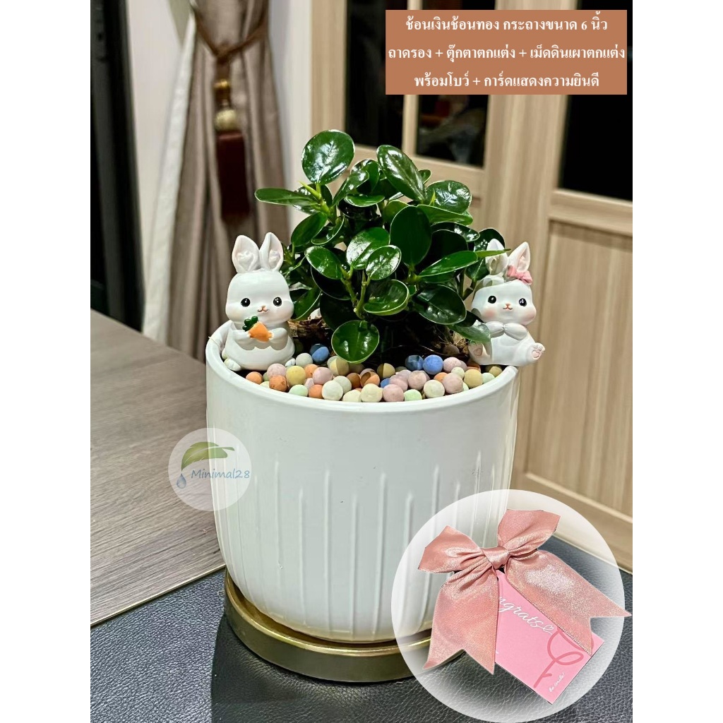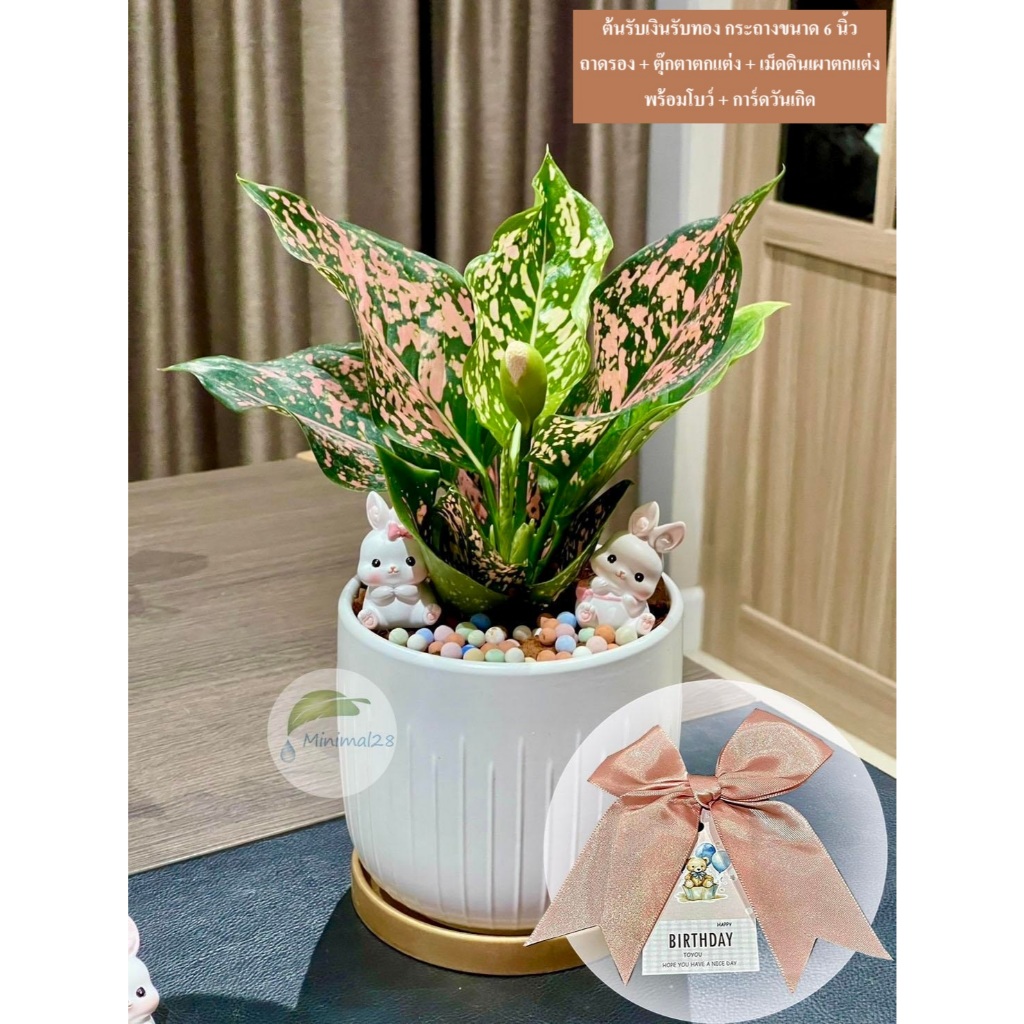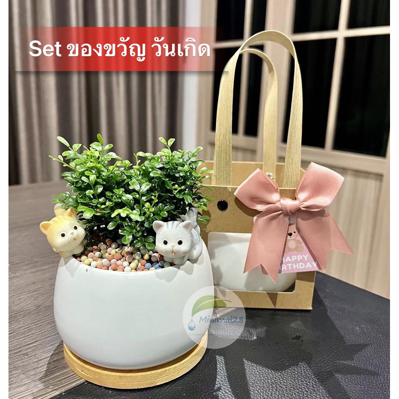 Set ของขวัญ ต้นไม้มงคล เลือกต้นไม้ได้ พร้อมอุปกรณ์ตกแต่ง ได้ครบ Set ตามภาพ #Minimal28