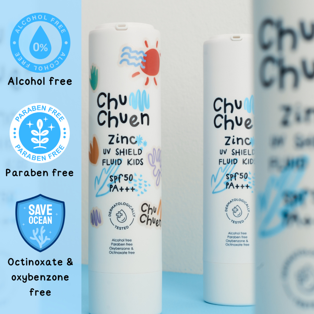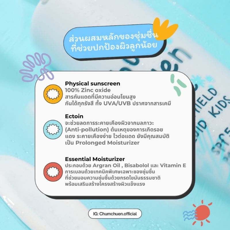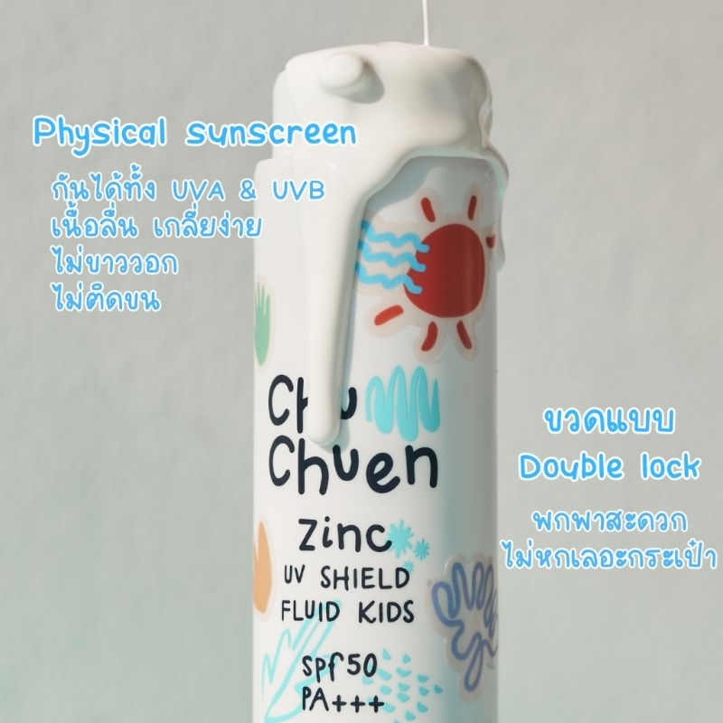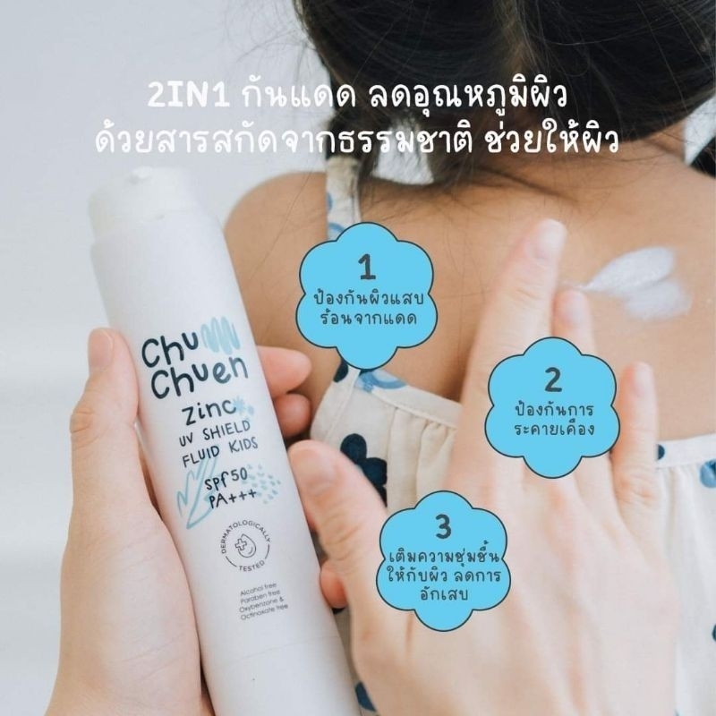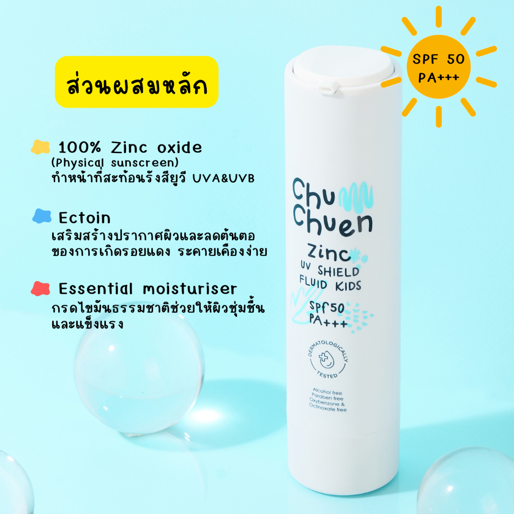 3 ขวด ครีมกันแดด ชุ่มชื่น chumchuen zinc UV shield fluid kids SPF50 PA+++ (ขนาด 50ml)
