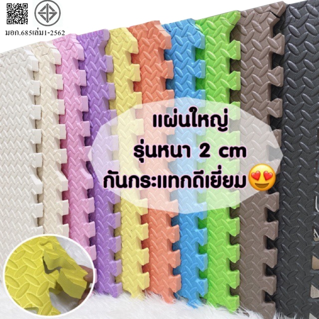 แผ่นรองคลาน แผ่นโฟมปูพื้น EVA ใช้รองกันกระแทก มีขอบปิดร่อง1ด้าน หนา2cm 30*30 / 60*60