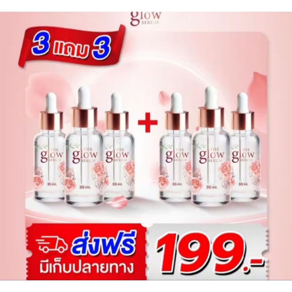 3 แถม3 (6ขวด) เดอะโกลว์ เซรั่ม the glow serum 30ml acne wrinkle สิว ฝ้า กระ