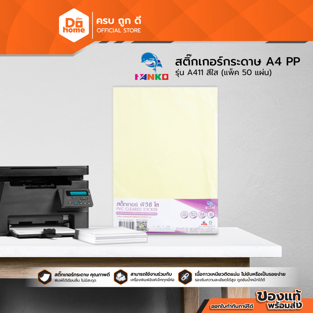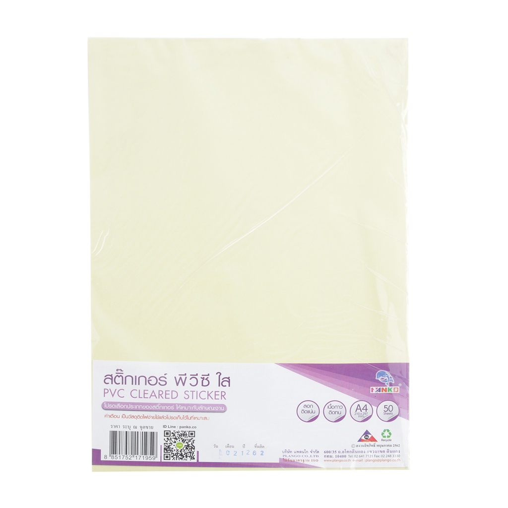 PLANGO สติ๊กเกอร์กระดาษ A4 PP รุ่น A411 สีใส (แพ็ค 50 แผ่น) |ZWG|