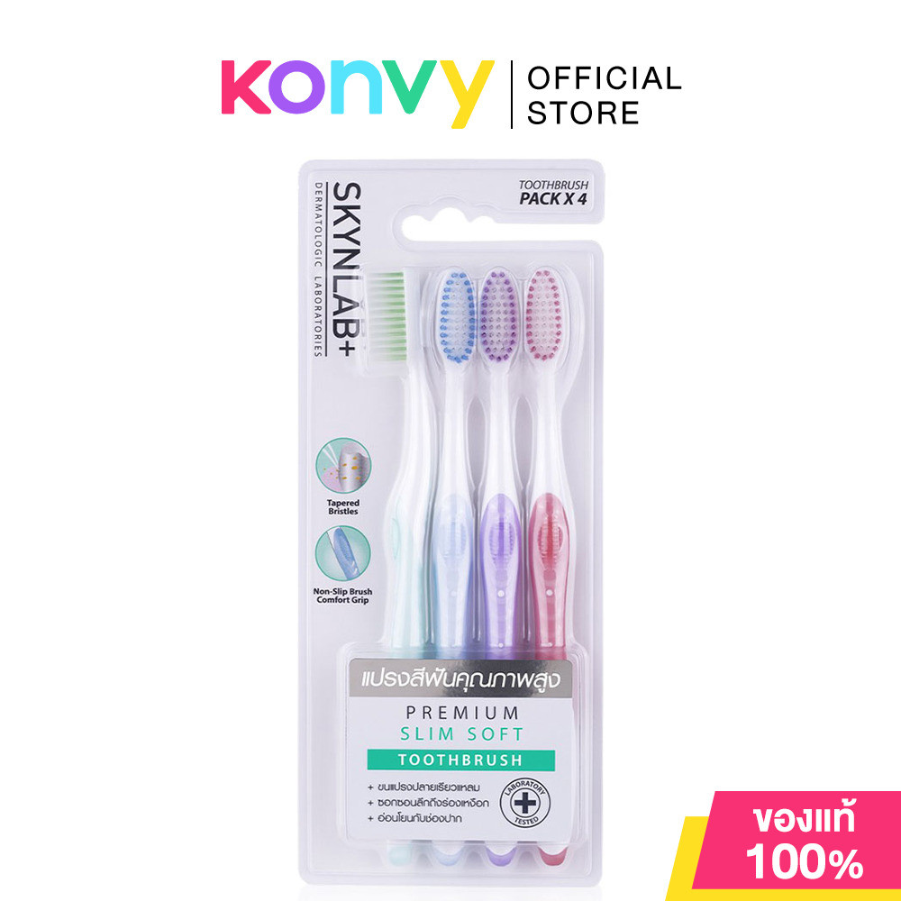 Skynlab Premium Slim Soft Toothbrush Blister Pack 4pcs [Mixed Color] สกินแล็บ แปรงสีฟันพรีเมี่ยมสลิมซอฟท์ 4ชิ้น คละส...