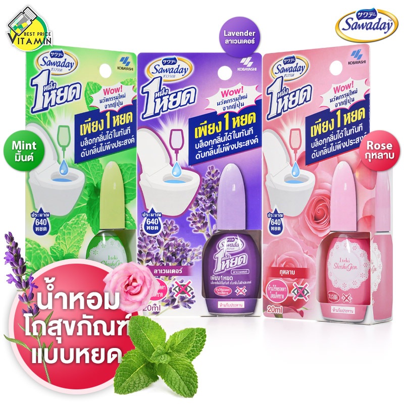 Sawaday One Drop Mint/Lavender/Rose ซาวาเด วัน ดรอบ มิ้นต์/ลาเวนเดอร์/โรส [20 ml.][สินค้ามีให้เลือก 3 กลิ่น] น้ำหอม