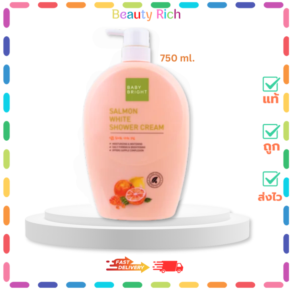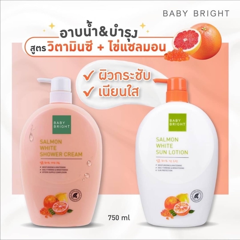 (1 ขวด) Baby Bright Salmon White Shower Lotion (สีส้ม) เบบี้ไบร์ท ชาวเวอร์โลชั่นแอนครีม (750 ml.)