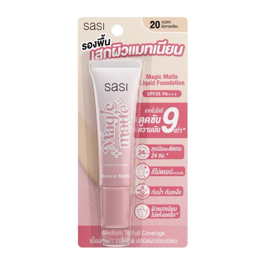 ( แบบหลอด 15 ml. ) รองพื้นเสกผิว แมท ศศิ Sasi Magic Matte Liquid Foundation ( มีให้เลือก 4 เบอร์ )
