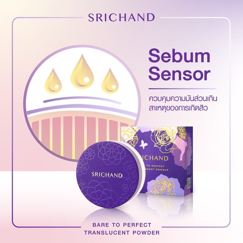 ศรีจันทร์ แป้งฝุ่นโปร่งแสง Srichand Bare to Perfect Translucent Powder ของแท้💯ขนาด 4.5g และ 10g แป้งม่วงGen2