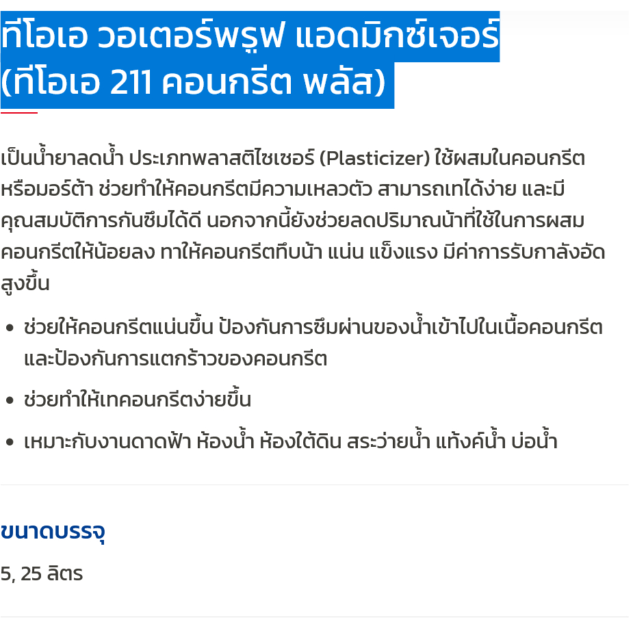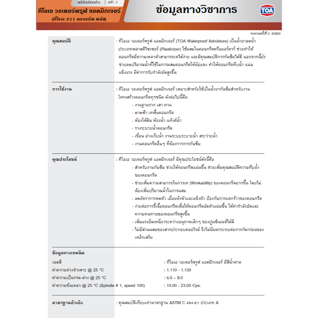 TOA ทีโอเอ 211 วอเตอร์พรูฟ แอดมิกซ์เจอร์ คอนกรีต พลัส น้ำยา กันซึม ผสมคอนกรีต ขนาด 5 ลิตร