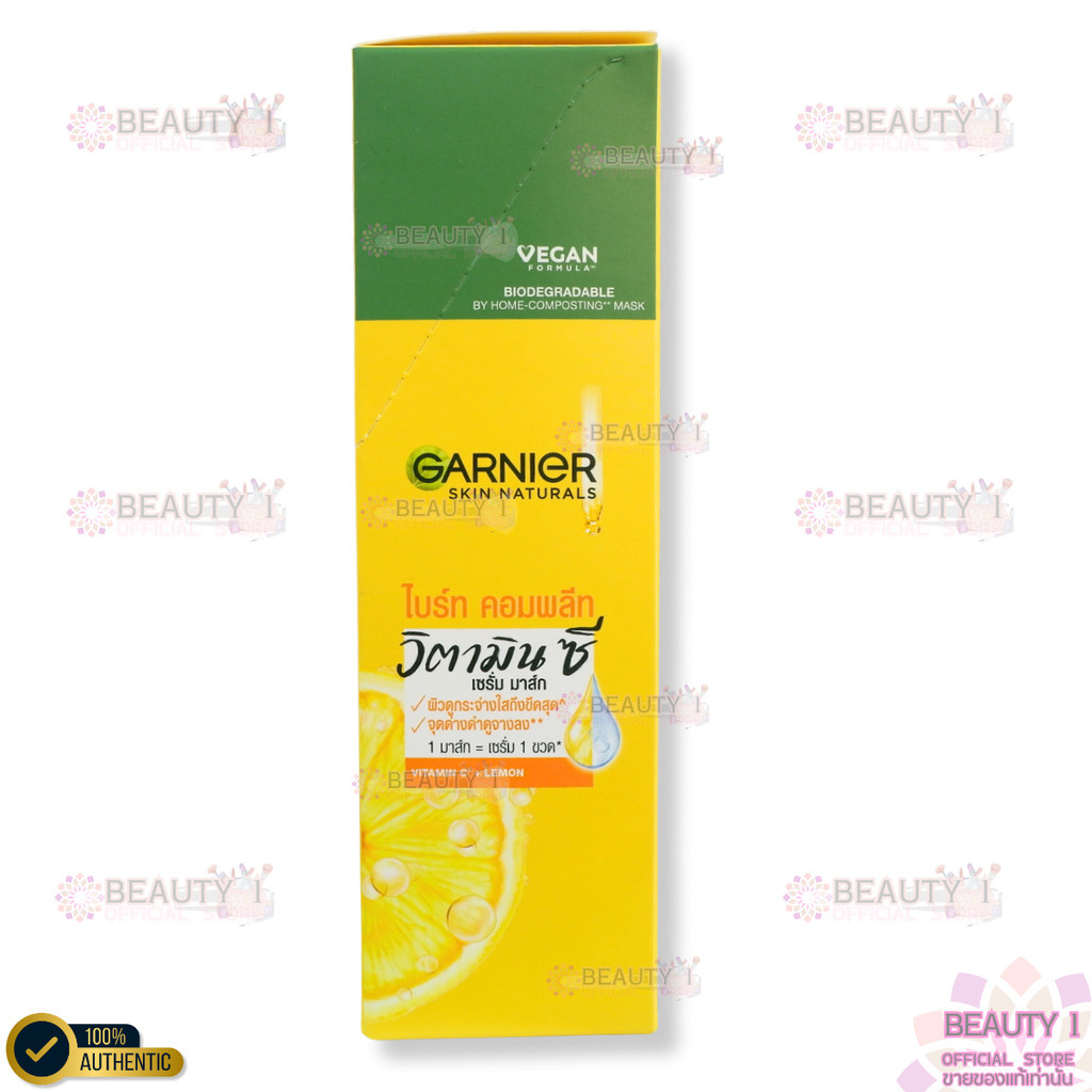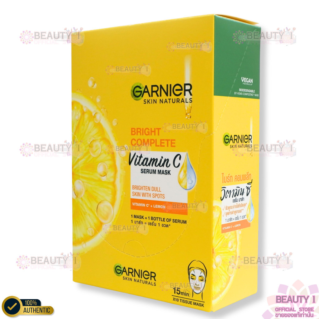 3 แผ่น วิตามินซี ไบร์ท คอมพลีท เซรั่ม มาส์กชีท การ์นิเย่ Garnier Vitamin C Serum mask 28g. x 3แผ่น