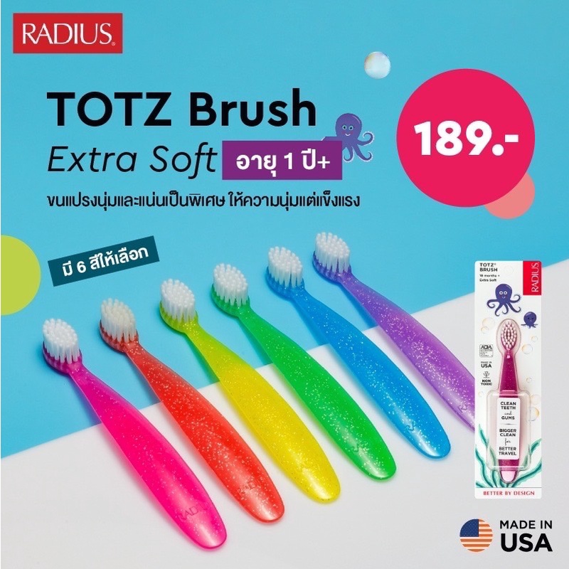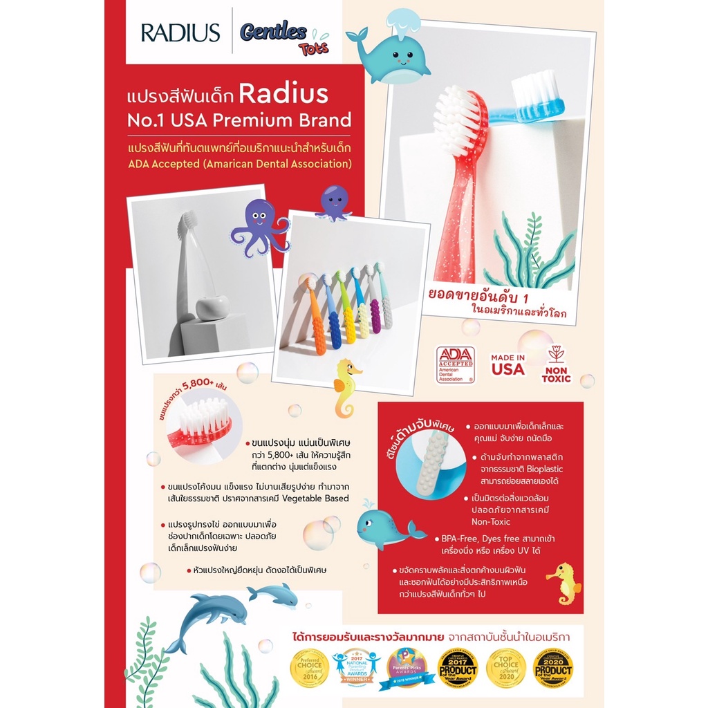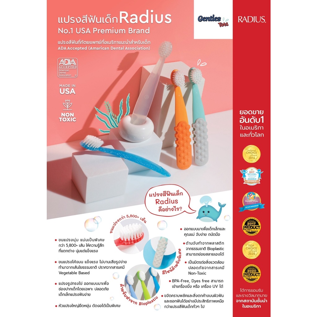 Radius แปรงสีฟัน สำหรับเด็ก ขนแปรงนุ่ม แน่นพิเศษ สำหรับเด็ก 6เดือน / 18 เดือน / 3ปีขึ้นไป