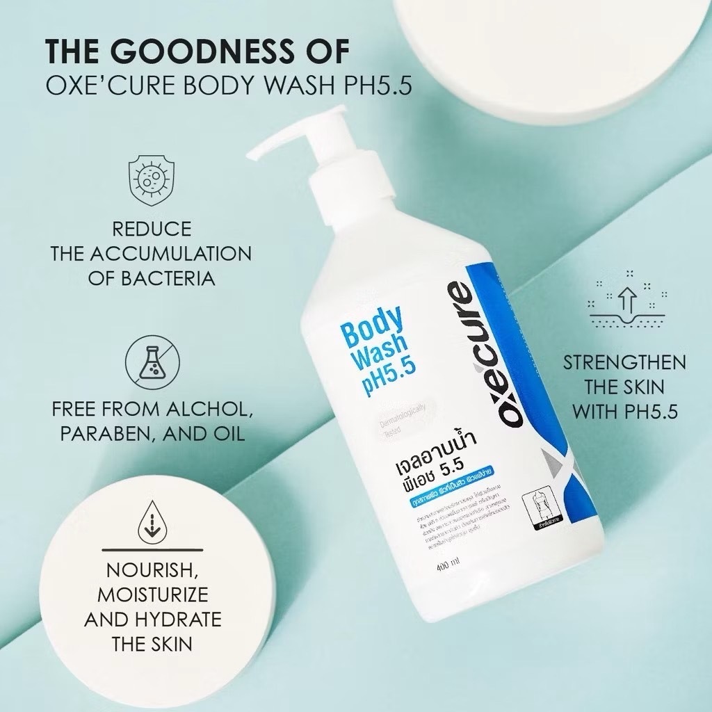 (โค้ดลด40% ในLive!!) 1แถม 1 Oxecure เจลอาบน้ำ ป้องกันผิวจากรังสี UV สูตรอ่อนโยน Body Wash pH5.5 400ml เพิ่มความชุ่มชื้น