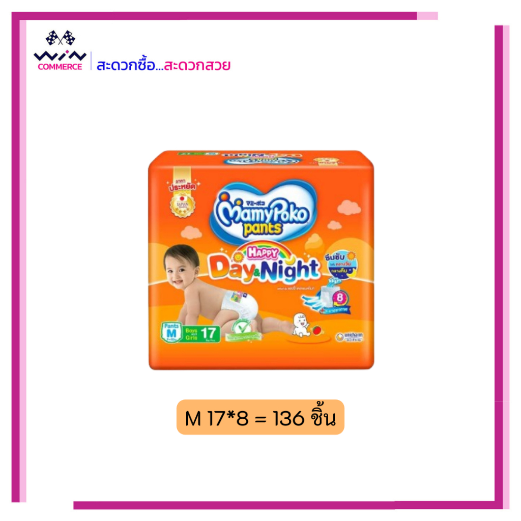 ยกลัง ราคาถูก MamyPoko มามี่โพโค ยกลัง ผ้าอ้อมแบบกางเกง ผ้าอ้อมเด็ก มามี่สีส้ม เดย์ไนท์ ครบไซส์ S- XXL
