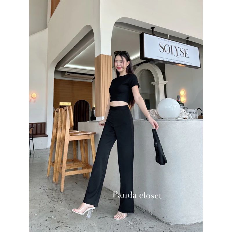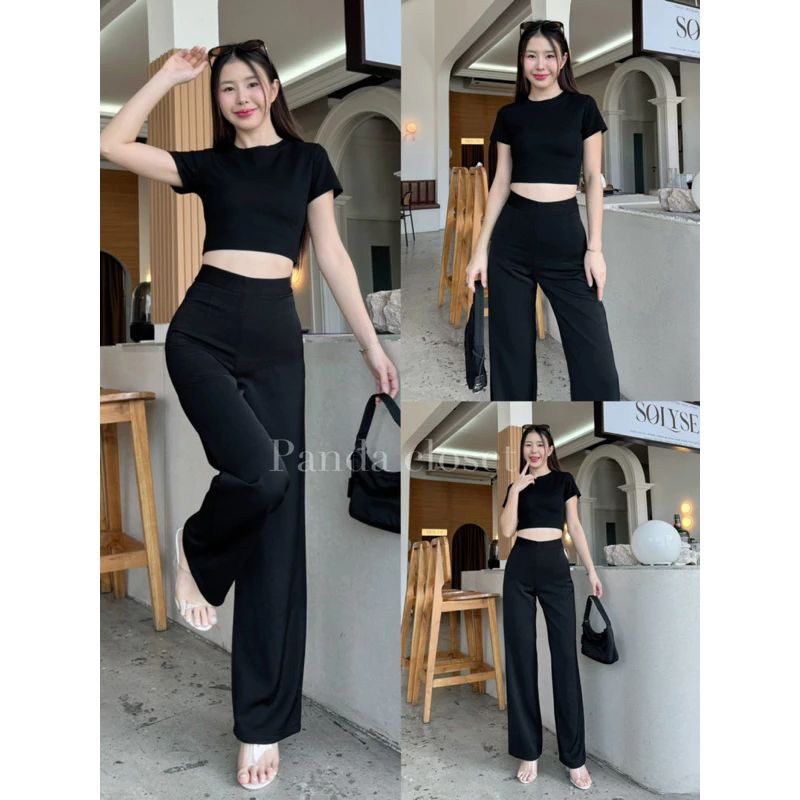 กางเกงฮานาโกะผู้หญิง ขายาว 👖 หนานุ่ม เอวสูง เก็บพุง ไซส์ XL สีดำ